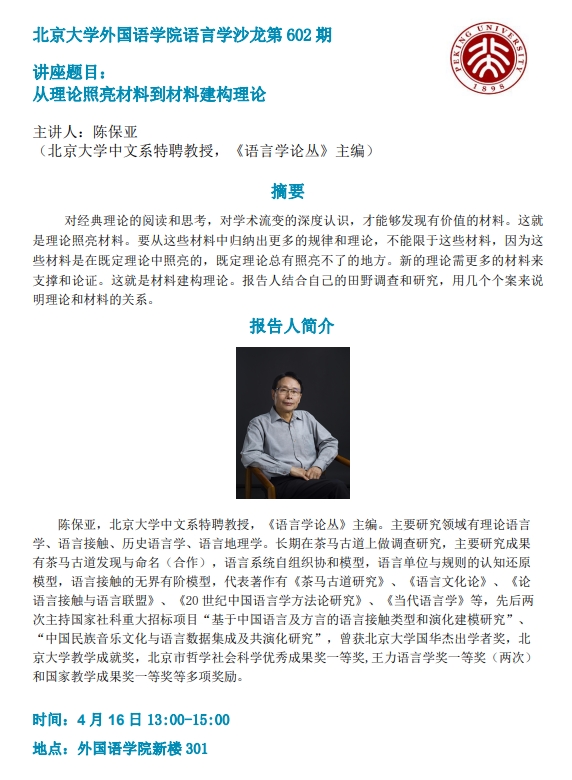 B体育平台语言学沙龙:从理论照亮材料到材料建构理论