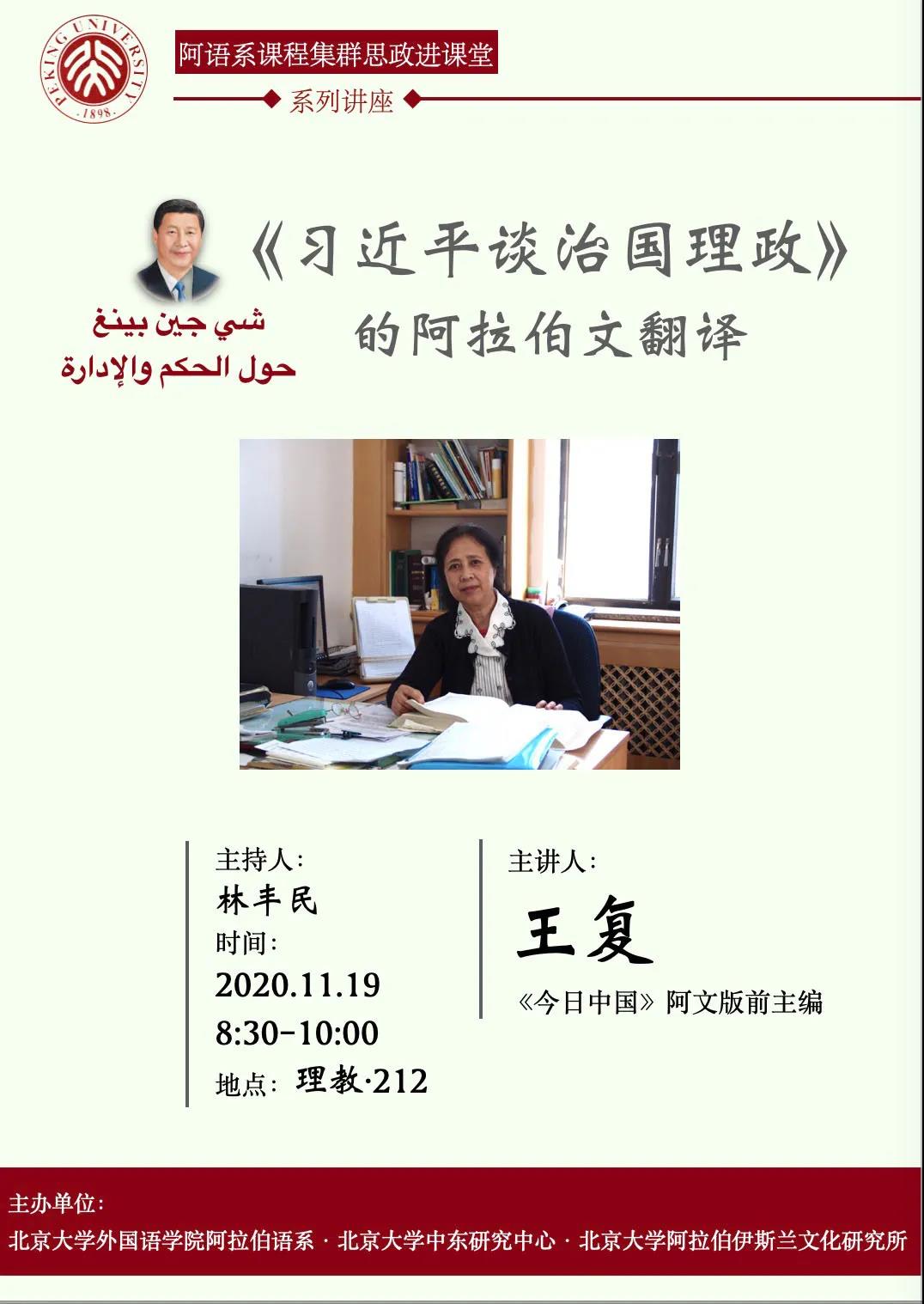 北京大学阿语系课程集群思政进课堂系列讲座开启第一讲——《习近平谈治国理政》的阿拉伯文翻译