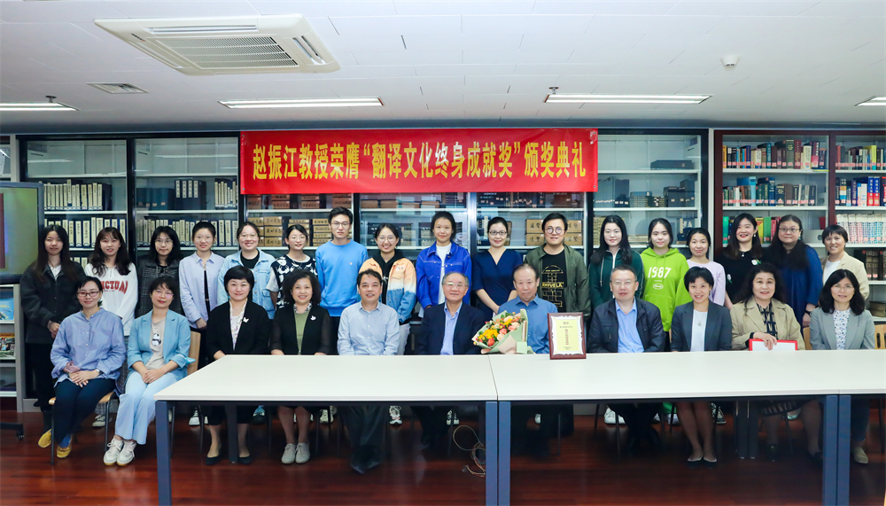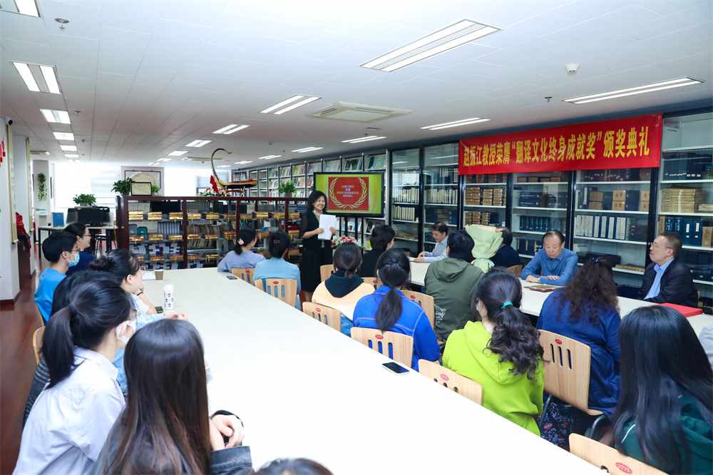 中国翻译协会第八次会员代表大会于今年4月1日在北京举行,会上举行了“翻译文化终身成就奖”表彰活动,B体育平台西班牙语专业教授、博士生导师、资深翻译家赵振江荣膺代表我国翻译界最高荣誉的翻译文化终身成就奖。2022年9月23日上午,中国翻译协会常务副会长,中国外文局原副局长王刚毅专程来到北京大学,为赵振江教授颁奖。赵振江教授、B体育平台党委书记李淑静、B体育平台院长陈明、副院长吴杰伟、副院长王丹、西葡意语系主任范晔、副主任于施洋及西葡意语系西班牙语专业师生出席了颁奖典礼。