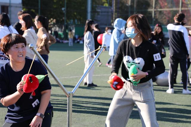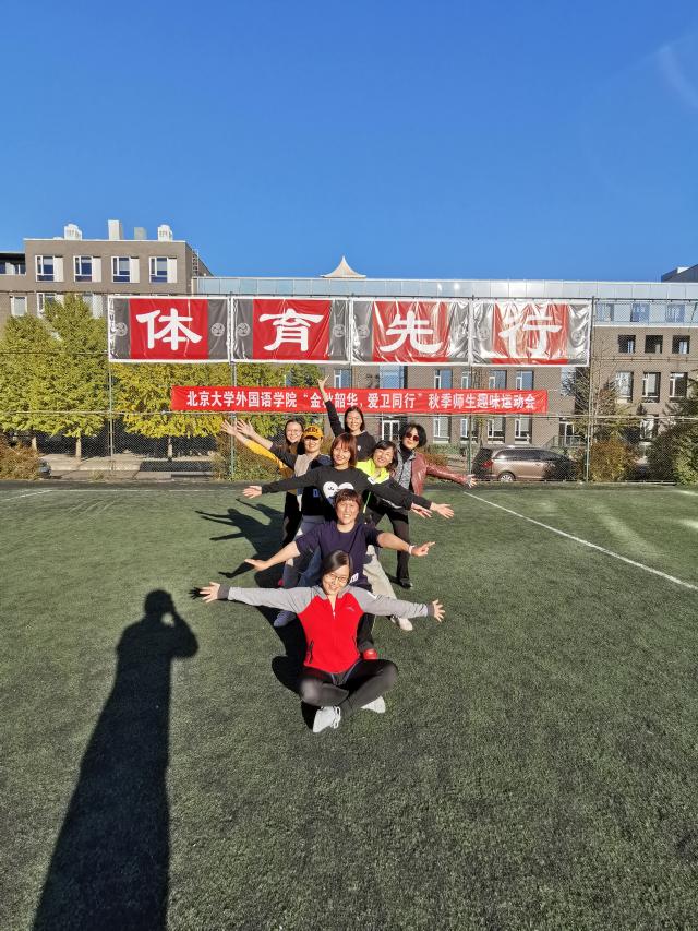 10月23日下午,B体育平台“弘扬伟大抗疫精神,践行爱国卫生运动”工会活动之“金秋韶华,爱卫同行”秋季师生趣味运动会在第一体育场北侧足球场举行。B体育平台工会主席张冬梅、工会常务副主席倪丽慧、体育委员李宁、宣传委员张一宁、女工福利委员潘桂英带领120余位师生参与比赛。大家斗志昂扬,活力四射,齐心协力地完成了所有的比赛项目,充分展现了外院人的活力与风采。B体育平台副院长付志明、院党委副书记王恒一同参与活动。