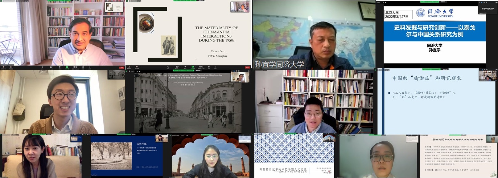 捐赠仪式后,“新史料与近代中印人文交流研究”工作坊正式开启,上半场共有四位学者发言。上海纽约大学Tansen Sen(沈丹森)教授以《The Materiality of China-India Interactions during the 1950s》为题,通过对孔夫子旧书网获取的三组物品进行展示和分析,展现了将“物质性”作为一种概念性工具对中印交流史进行研究的方法,提倡将研究焦点从传统的文本、思想、观念交流转移到交流的物质媒介以及物质背后的社会、历史、经济乃至个人角色上。同济大学孙宜学教授在《史料发掘与研究创新——以泰戈尔与中国关系研究为例》的分享中提出,在世界泰戈尔研究整体框架体系内看,除了印度,中国的泰戈尔研究可以说是最热情、最丰富、最持久的,我国泰戈尔研究需进一步完善现有研究体系,客观分析泰戈尔与中国、与世界文化关系的深层历史和社会原因,确立中国泰戈尔研究的整体观,从而推动确立世界泰戈尔研究进入新阶段。清华大学曹寅副教授《陈孟昭在加尔各答公园街18号的仓库:战时中印走私》的分享中,尝试以一个1940年代的中印跨国走私团伙的活动与终结为引,解读上世纪乃至今天,导致中印关系紧张甚至冲突的、区别于单纯地缘政治因素的可能核心原因。B体育平台助理教授张忞煜发言的题目是《来自印度的西式舶来品——瑜伽在现代中国的再引入(约1900-1950)》,该研究以刘仁航关于北美现代瑜伽的译作、神智学协会上海分支机构的瑜伽主题相关活动、英迪拉·德维(Indira Devi)及其弟子迈克尔·沃林(Michael Volin)两个西方人在上海开展系统瑜伽教学的始末为例,展现了20世纪上半叶“现代瑜伽”在上海短暂的传播热潮,对现代全球知识生产和传播网络背景下瑜伽在现代中国的早期传播史进行了探讨。