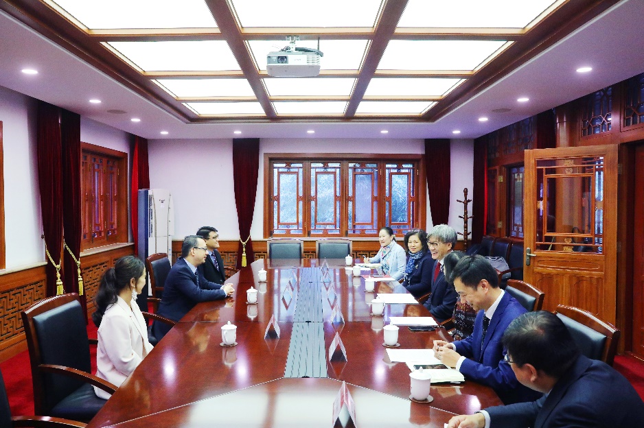 电影展映开始前,北京大学副校长王博在临湖轩会见了菲律宾驻华使馆代办欧帝诺先生,双方共同回顾中菲两国友好交往历史,并就北京大学与菲律宾驻华使馆的人文交流活动、与菲律宾马尼拉雅典耀大学的学术交流状况及本次电影展映活动等话题进行热烈而友好的交流。B体育平台党委书记李淑静、副院长吴杰伟、东南亚系主任史阳及菲律宾语教研室教师黄轶、菲律宾驻华使馆三秘兼副领事亚伦·卡里奥先生及文教专员黄绍梅女士参加了会谈。