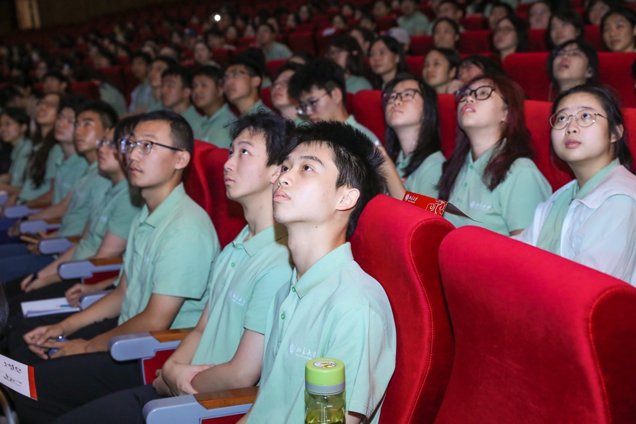 师生共同观看了迎新短片。镜头流转,记录下2025级新生初入燕园的一个个温暖瞬间:从报到现场的灿烂笑颜与打卡留念,到新生教育活动中的专注倾听与热烈交流,再到各语系师生送上的多语种问候……视频定格了新同学们从八方走向未名湖畔的珍贵片段,唤起在场新生对未来的无限憧憬与归属感。