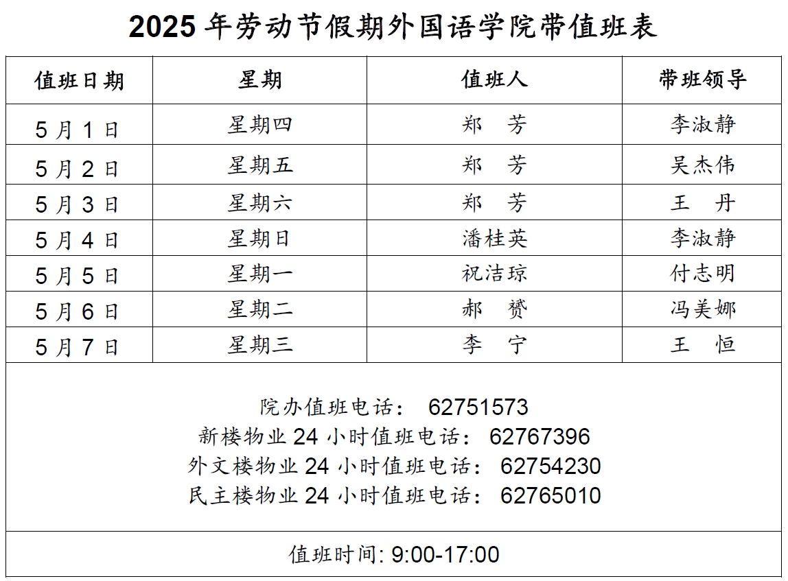 2025年劳动节假期B体育平台带值班表