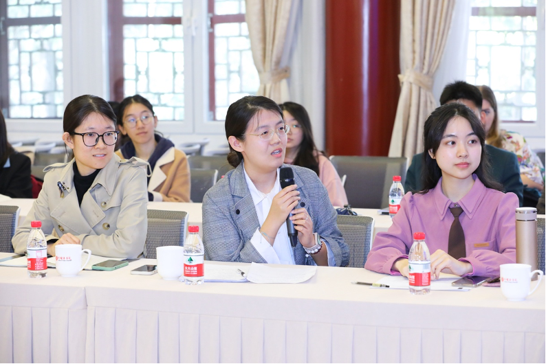 在简短的开幕致辞后,交流正式开始。首先,德语系21级硕士研究生、德国研究中心学生、即将赴柏林洪堡大学攻读博士学位的邢旭向来宾提问:她了解到德国和欧洲个别大学终止或暂停了与中国国家留学基金委(CSC)博士奖学金项目的合作,鉴于中德双方均在不同场合多次强调学术与文化交流的重要性,请问施潘先生如何看待这一趋势。
