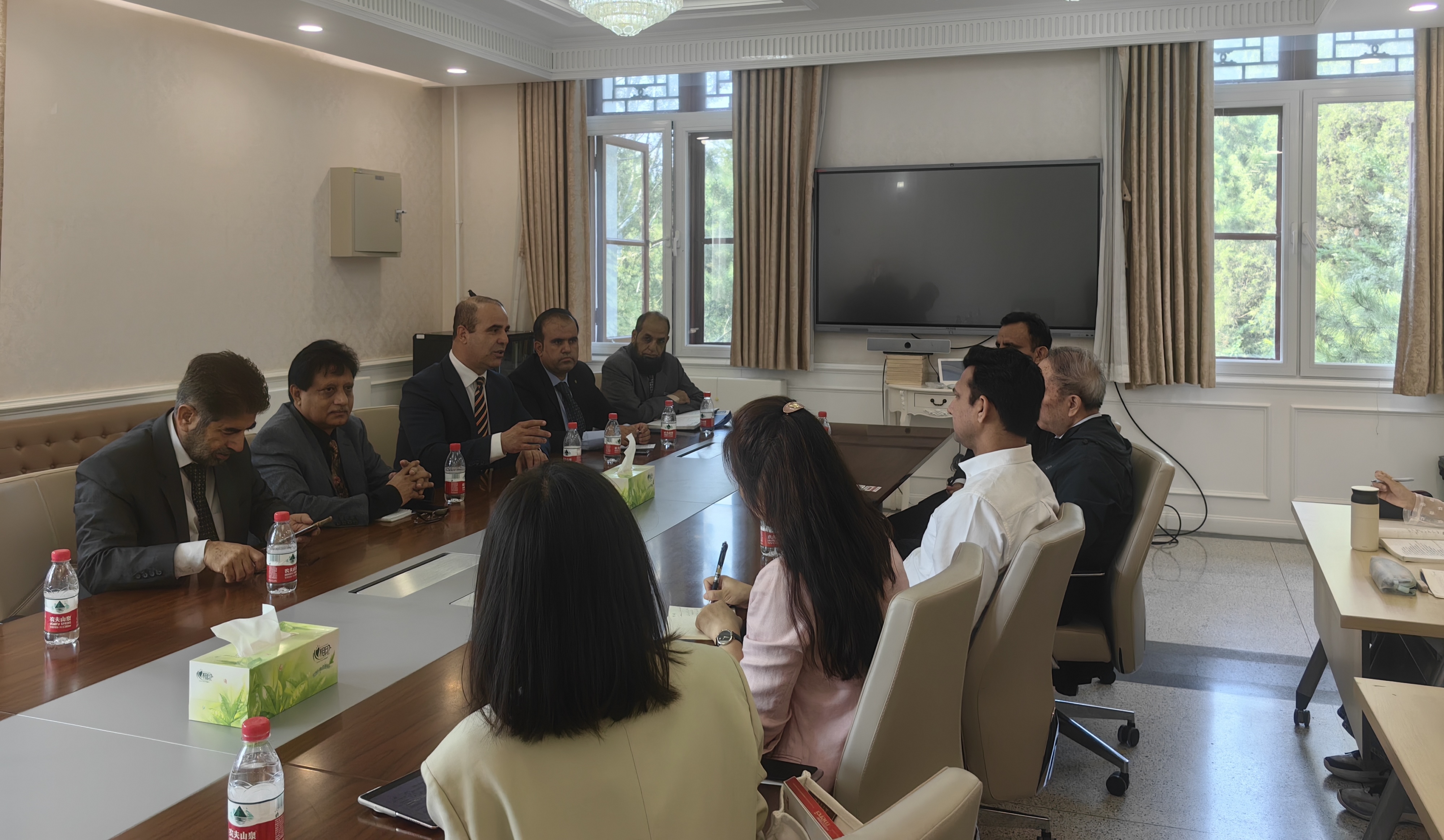 2024年9月19日10时许,巴基斯坦智库代表团一行六人访问B体育平台乌尔都语专业,在外文楼206会议室与乌尔都语专业师生座谈交流。代表团由俾路支省智库网络的负责人、研究员,以及大学教授、学者组成。我校巴基斯坦研究中心唐孟生教授、南亚学系副系主任张嘉妹副教授、巴基斯坦籍专家阿舍得博士以及乌尔都语专业硕士研究生、本科生参加了座谈会。座谈由乌尔都语教研室主任张亚冰主持。