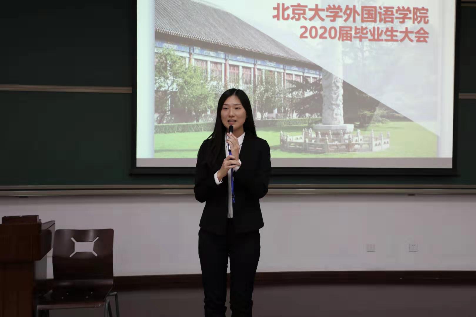 2019届优秀毕业生代表周一帆和夏康静作为本次大会的嘉宾分享了各自的求职经验。目前任职于商务部的周一帆介绍了语言专业毕业生的求职方向,并结合自身求职经历,建议毕业生们在找工作的过程中知己知彼、锚定目标,寻找与自己的优势专长、实践经历、兴趣相匹配的行业和岗位。她着重介绍了公务员笔试和面试的备考经验,并分享了自己选择中央选调和商务部的心路历程。