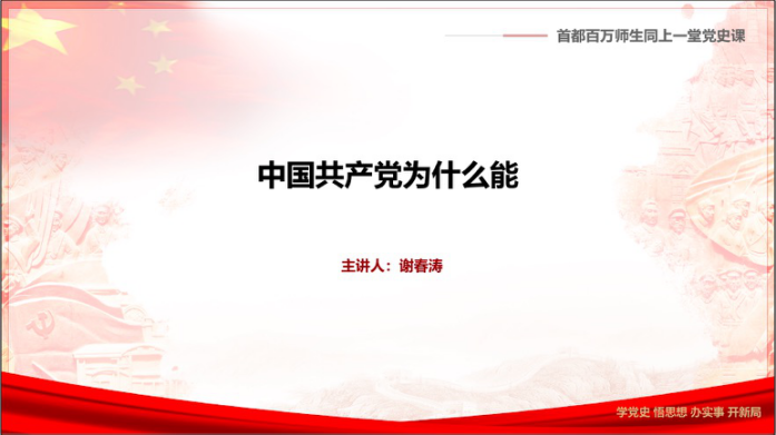 为深入学习贯彻习近平总书记在党史学习教育动员大会上的重要讲话神, 引导党员深入学习党史,大力发扬红色传统,传承红色基因,331日下午,B体育平台全体学生党支部开展首都百万师生同上一堂党史课公开课学习活动,共同学习由中央党校副校长谢春涛主讲的《中国共产党为什么能》。16个学生党支部积极响应,结合集中观看、党小组讨论、个人学习等多种形式积极开展学习研讨。