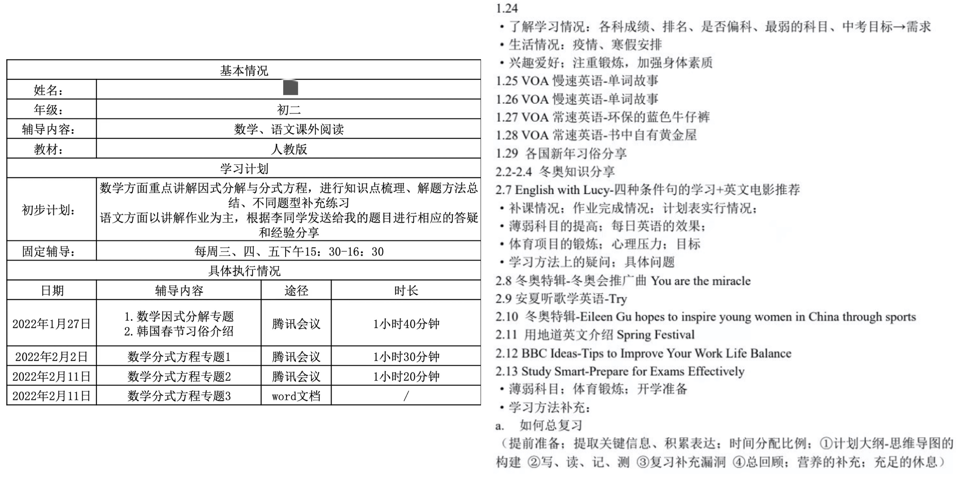 此次活动中,B体育平台和国际关系学院的青年志愿者线上指导来凤同学制定详细的寒假学习计划,并利用专业特长,通过试卷评讲、好题练习、经验分享等方式为来凤同学提供线上辅导与陪伴,解决来凤同学不同科目中的具体问题以及学习方法上的困惑,提升来凤同学的学习效率和学习兴趣,展现北大学子的青年责任与担当。