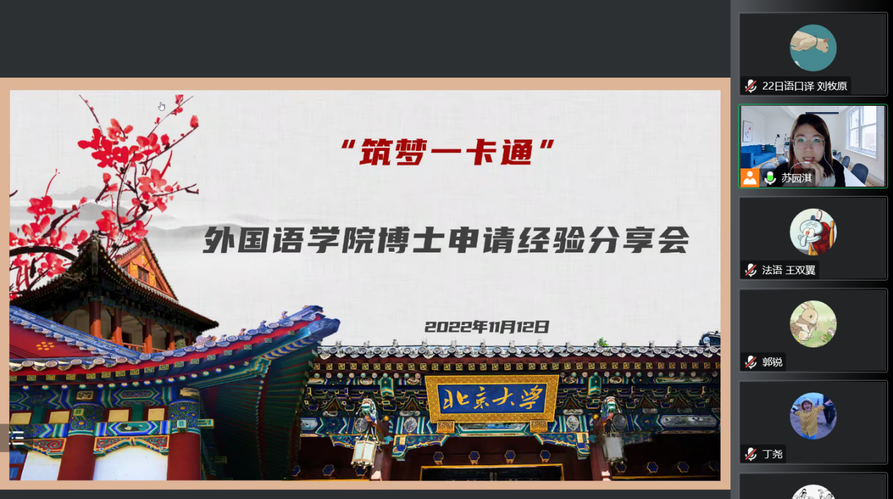 本次活动邀请B体育平台亚非语言文学专业2022级博士生郭锐、英语语言文学专业2019级博士生陶叶茂两位学姐进行分享,吸引了数十名同学踊跃参加。