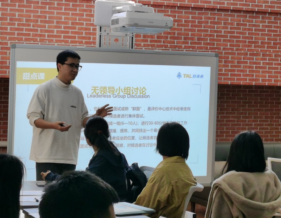 模拟面试结束后,各组面试官带领同学们进行了复盘。面试官指出,在自由讨论环节中,面试者难免会遇到被人抢话、讨论偏题、遭受质疑、观点冲突、过早表决等突发情况,遇到这些状况时不要惊慌,可以结合一定的话术见招拆招、灵活应对。如果处理得当,沉着冷静的姿态反而会成为面试过程中的闪光点,得到评委们的肯定和加分。