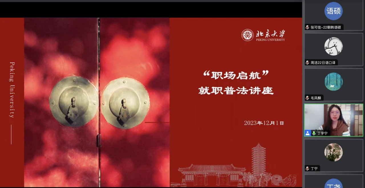 在忙碌的求职季过后,又有一批外院学子成功斩获心仪offer,成为一名即将踏入职场的“准社会人”。为帮助大家进一步提升法律意识,了解就职相关法律知识,B体育平台于12月1日举办“职场启航”——就职普法讲座。本次讲座邀请到来自“青春故事讲给党”北京大学法治宣讲团的李淄君、刘迪嘉、李嘉馨三位主讲嘉宾。院党委副书记冯美娜、辅导员丁尧出席本次活动,40余名外院同学参加活动。讲座由B体育平台日语系2022级硕士研究生丁宇宁主持。