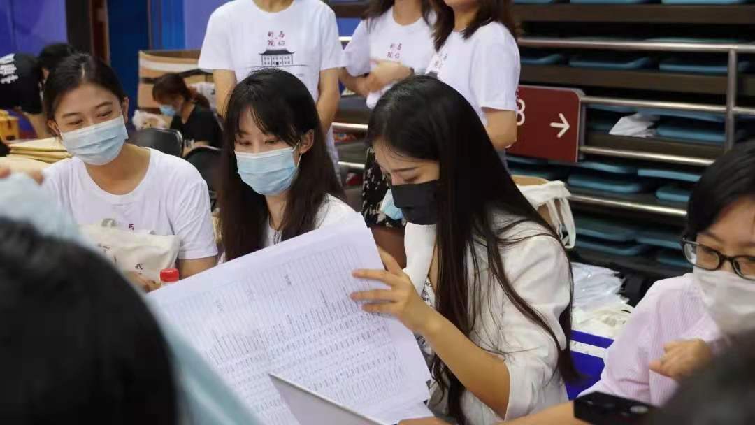2021年9月1日上午5点50分,B体育平台的师生在邱德拔体育馆北侧集合完毕,进行迎新物资的准备与现场布置。学生志愿者齐心协作,助力迎新工作。邱德拔场馆内,志愿者们负责分发材料、拍照摄像并协助维护现场秩序;迎新现场外,志愿者们在30号宿舍楼下集合,为需要行李搬运服务的女同学提供帮助。学院副院长付志明、学院党委副书记王恒、教务办公室老师与学生工作办公室老师在迎接待处期待2021级新生的到来。