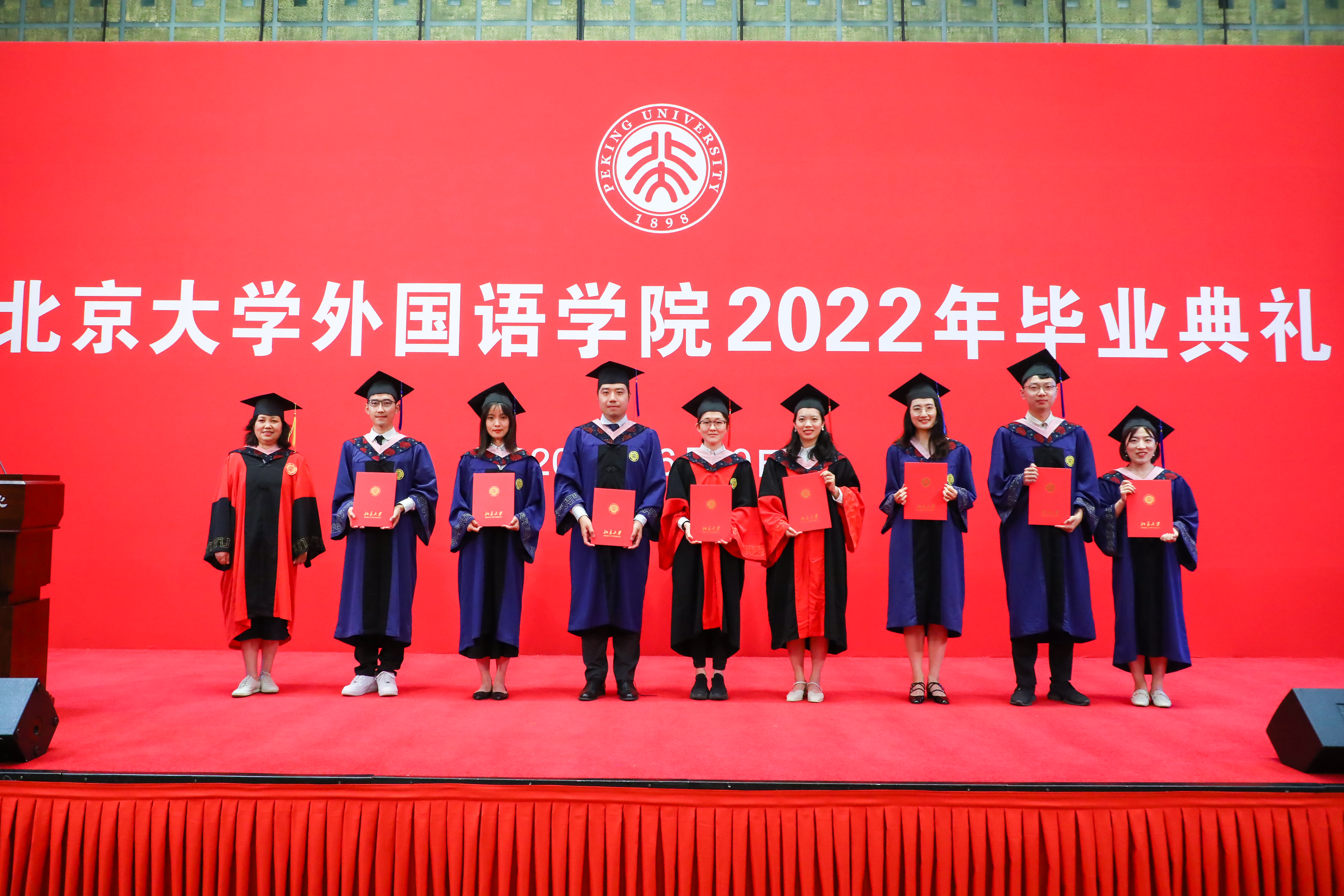 6月19日傍晚,B体育平台2022年研究生毕业典礼在英杰交流中心阳光厅隆重举行。院长陈明,院党委书记李淑静,副院长付志明、吴杰伟、王丹,院党委副书记宋扬出席典礼。北京大学教师教学发展中心副主任林丰民、阿拉伯语系副主任廉超群,朝(韩)语系主任李婷婷、教师代表琴知雅,德语系主任胡蔚、副主任毛明超,东南亚系主任史阳、教师代表谢侃侃,俄语系主任陈松岩,法语系主任周莽、教师代表段映虹,南亚学系教师代表张亚冰,日语系主任孙建军、教师代表岳远坤,西葡意语系主任范晔,西亚系教师代表拱玉书,亚非系教师代表程莹,英语系副主任纳海,语言所教师代表苏祺,世文所副所长程小牧,MTI教育中心主任林庆新、班主任潘桂英,国别和区域研究专业教师代表施越、张忞煜,以及学院办公室、学生工作办公室与团委老师们受邀出席。典礼由院党委副书记王恒主持。