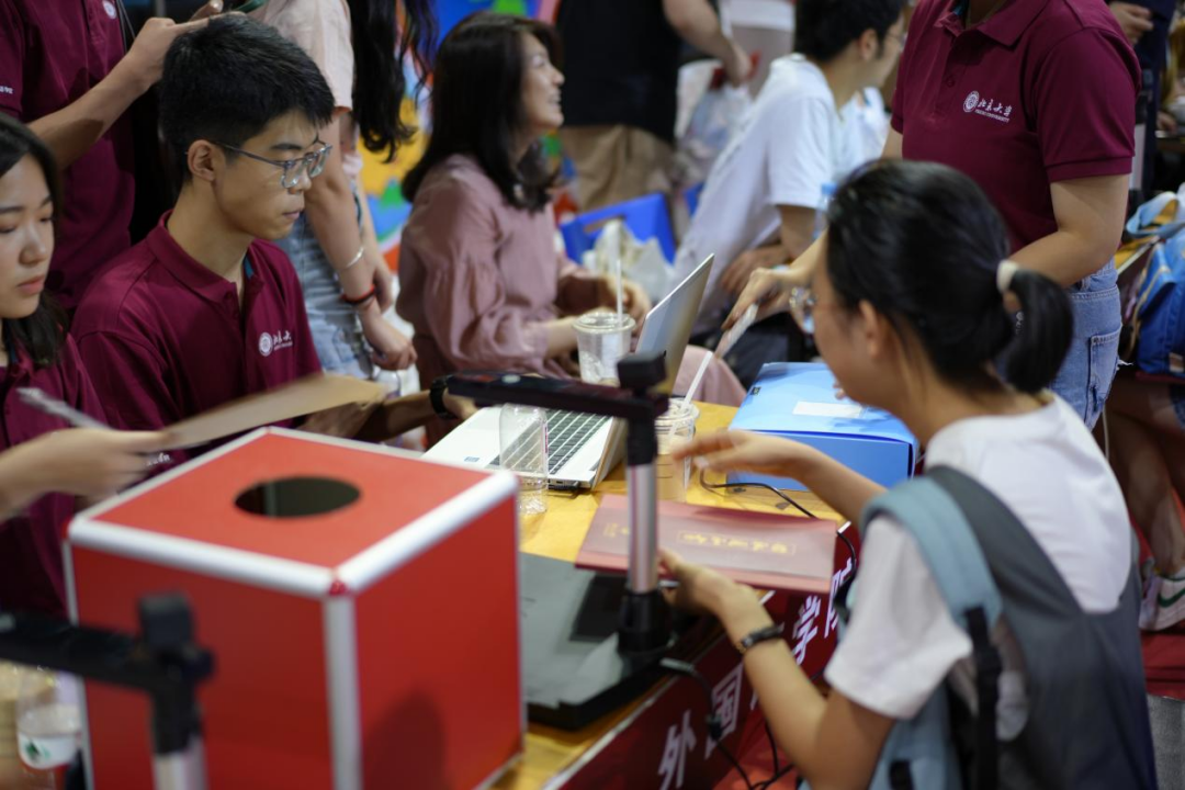 上午6时40分,来自英语系的第一位2023级本科新生前来报到,B体育平台的迎新工作随之拉开帷幕。在迎新站老师和志愿者们的通力合作下,新生报到工作有序开展。循着迎新志愿者的引导,新生们依次完成系统报到、户口卡提交、档案材料提交及物资领取等步骤,并参与多语种祝福抽奖活动。报到工作紧张有序,志愿者们配合默契的“流水线作业”保证各项手续的高效完成。