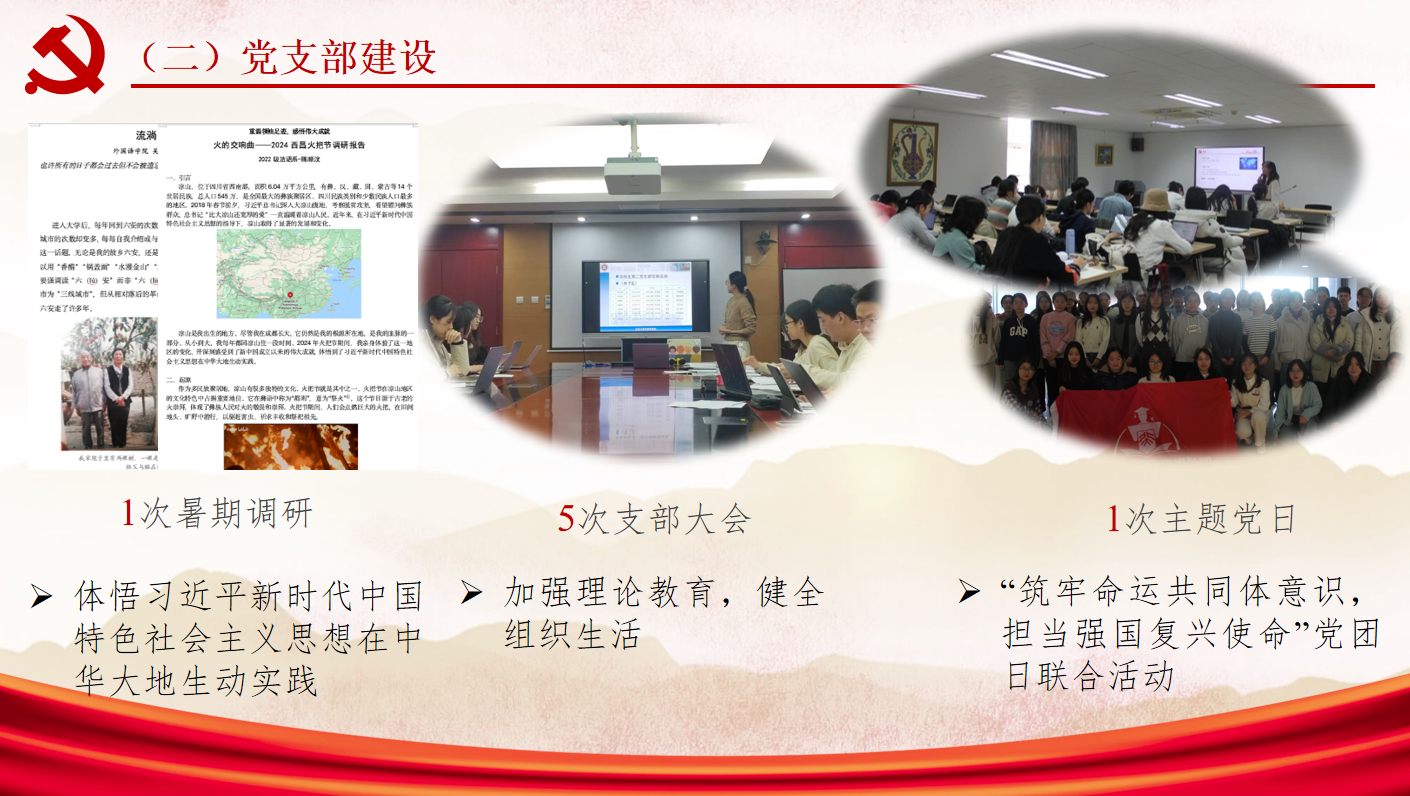2024年,B体育平台各学生党支部严格落实“三会一课”制度,定期召开党员大会、支部委员会、党小组会,按时上好党课,各党支部顺利完成了本年度积极分子培养、预备党员接收、预备党员转正、党组织关系转接等常规工作。本科生第三党支部创新工作思路,采用“1对1领航”模式,鼓励党员形成互督互助小组,及时有效了解党员思想动态。本科生第六党支部始终抓牢“支部组织建设”的中轴线,建立支部台账,填平工作漏洞,填充工作空白。阿语研究所党支部切实开展多层次、高质量的“三会一课”,集中学习党的最新理论成果。
