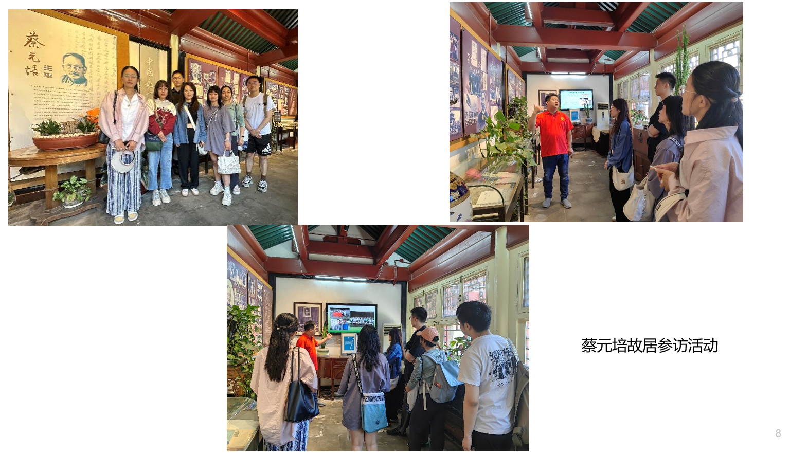 各支部积极动员党员深入社会基层课堂,躬身践行青年使命,助力青年党员感受时代脉搏,体悟社会发展。本科生第二党支部开展“重温领袖足迹,感悟伟大成就”暑期调研活动,引导支部党员与黄土相拥、与国情相逢、与人民同心、与时代同行,把论文写在祖国大地上。本科生第五党支部先后前往北京奥运博物馆与中国海关博物馆开展参访学习,将专题党课搬进爱国主义教育基地,用好红色资源,赓续红色血脉。世文所语言所研究生党支部策划主题党团日活动,集体前往蔡元培故居,感受蔡元培先生矢志不渝的精神风貌。日语研究生党支部组织开展颐和园益寿堂参访学习活动,引导党员同志深入了解“赶考”精神,坚定理想信念,汲取奋进力量。