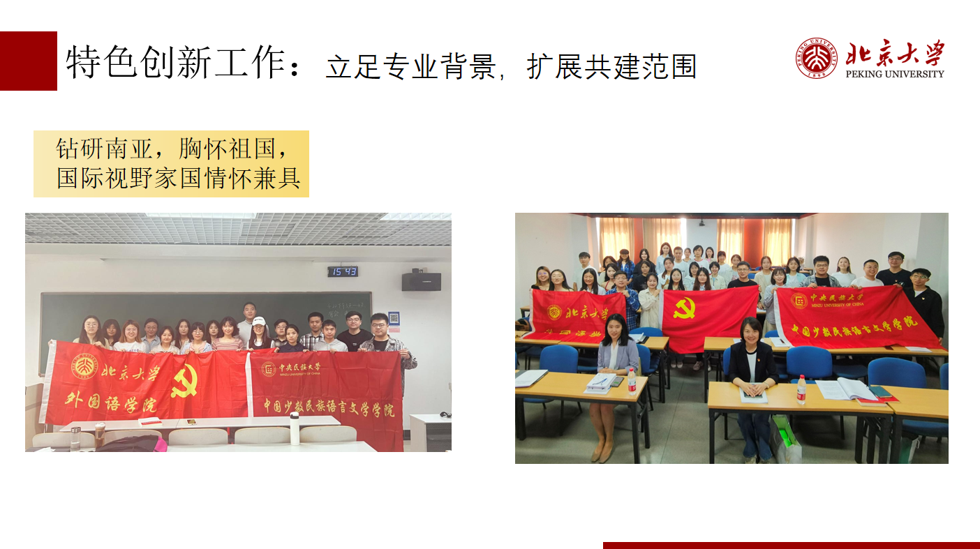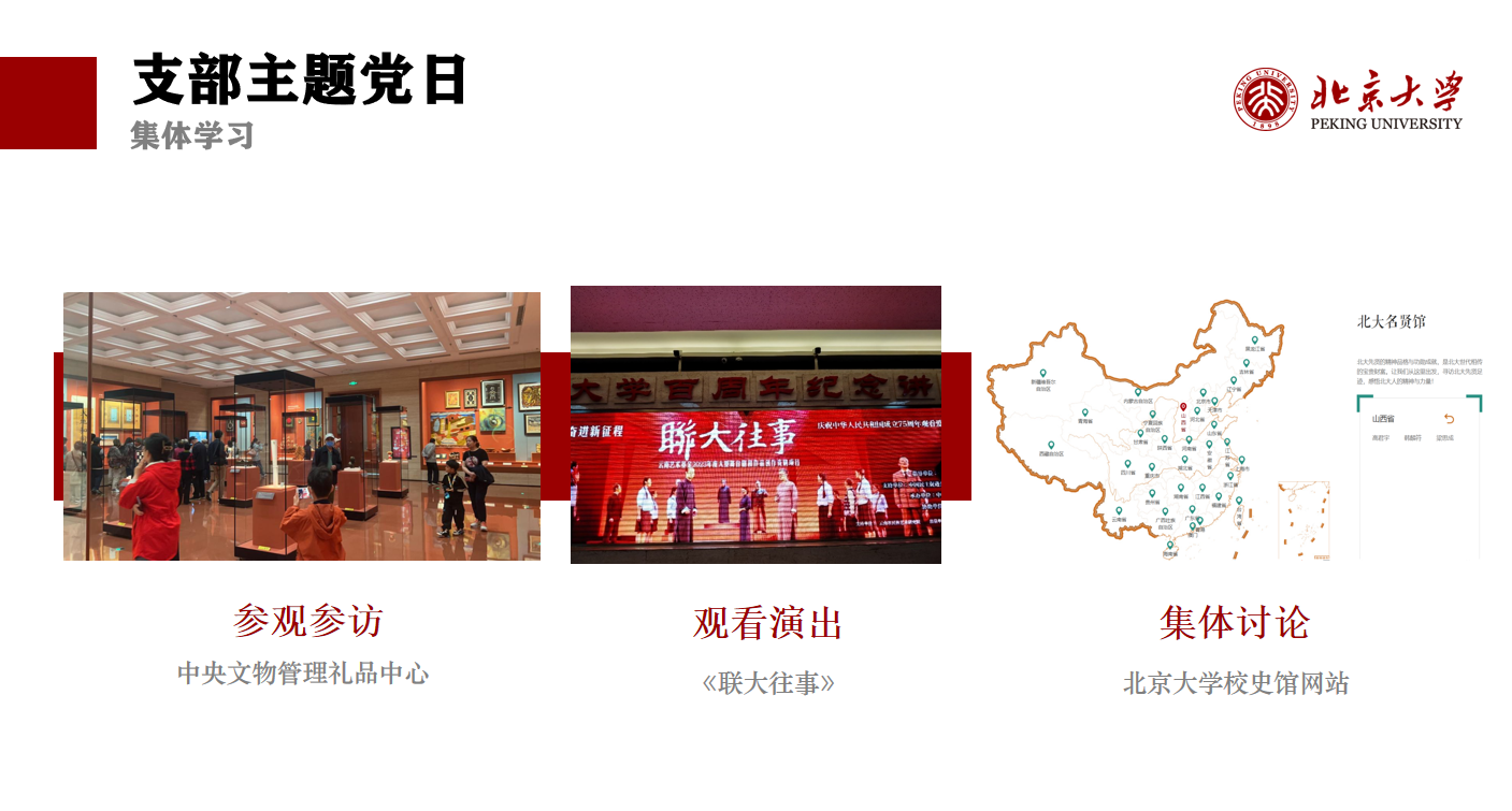 各支部丰富活动主题,创新活动形式,积极开展联合共建活动,为党员提供沟通交流的机会,同时借鉴其他支部建设经验。本科生第一党支部与本科生第四党支部联合举办主题党日活动,组织党员参观赛克勒考古与艺术博物馆,深刻体悟中华文化与中华文明的对外交流史。俄语研究生党支部与本科生第五党支部共同前往中央礼品文物管理中心,深入了解国礼的历史传承和丰厚底蕴。南亚研究生党支部、本科生第六党支部与清华大学、中国人民大学、中央党校(国家行政学院)学生党支部开展四校基层学生党支部联学活动,通过党团共建等形式扩大支部活动辐射面和影响力。