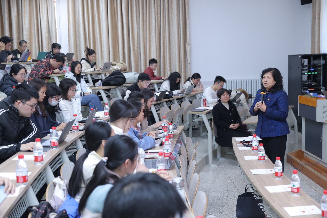 随后,烟台大学B体育平台党总支书记姜丽岳应邀作专题授课。她以红色胶东现象为切入点,生动讲述了革命先烈的英勇事迹和胶东地区在中国革命历史中的重要地位。姜丽岳认为,地域文化的鲜明特质与红色文化的引领提升是胶东红色现象形成的关键因素。她强调,习近平总书记指出“以中国式现代化全面推进强国建设、民族复兴,是新时代新征程党和国家的中心任务。”作为党员要永远保持与人民群众的血肉联系,常怀“民族复兴有我在”的使命担当。报告声情并茂,不仅让听众深刻感受到了胶东人民前赴后继、初心永驻、砥砺前行的基因与品质,也进一步激发了师生党员的爱国热情和责任担当。