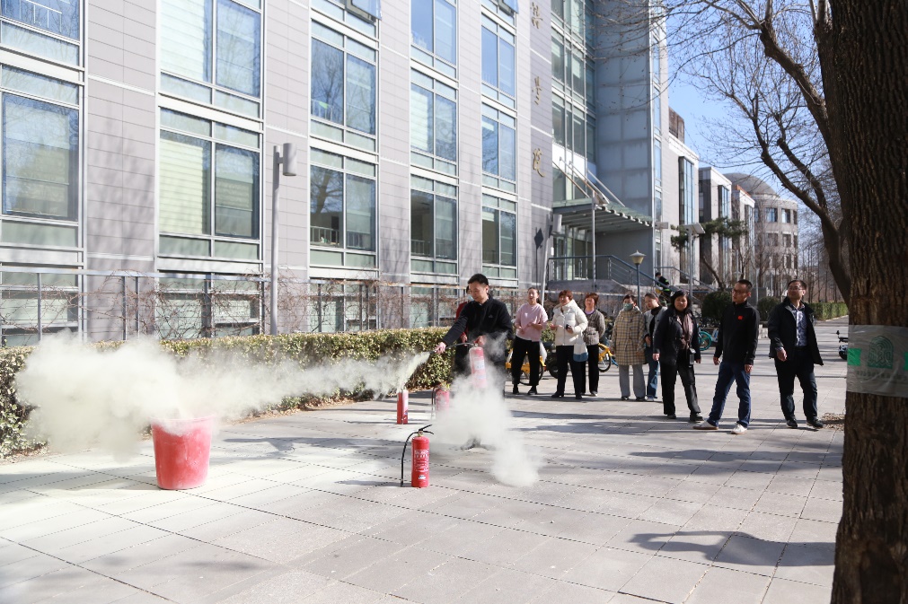 演练结束后,部分师生参加了灭火器操作方法教学,并对使用灭火器进行救火进行了实地演练。