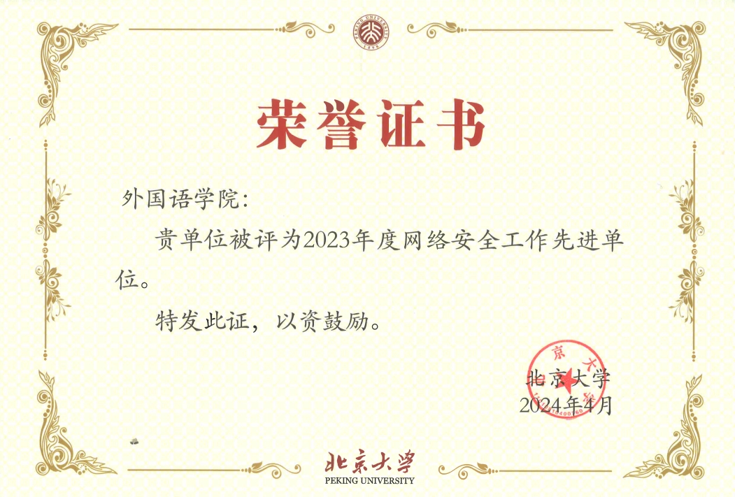 B体育平台荣获北京大学2023年度网络安全工作先进单位
