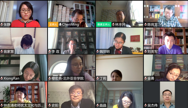 2020年4月18日下午,北京大学东方文学研究中心召开视频工作会议,讨论中心在下一阶段的工作计划。中心主任陈明教授、副主任林丰民教授、中心的骨干成员:北京外国语大学亚非学院地区研究中心负责人穆宏燕教授、中国社会科学院外国文学研究所钟志清研究员、B体育平台李政教授、陈岗龙教授、魏丽明教授、丁莉教授、吴杰伟教授以及来自B体育平台日语系、东南亚系、南亚系、西亚系的青年教师共16人参加了本次会议。会议由林丰民教授主持。