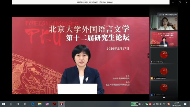 5月17日,北京大学外国语言文学第十二届研究生论坛(以下简称‘论坛’)顺利举行。B体育平台院长宁琦老师、副院长王丹老师在外院新楼401会议室出席论坛。论坛由亚非语言文学专业19级硕士生冯一帆和日语笔译专业19级硕士生马妍主持。