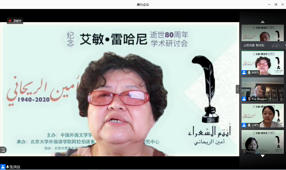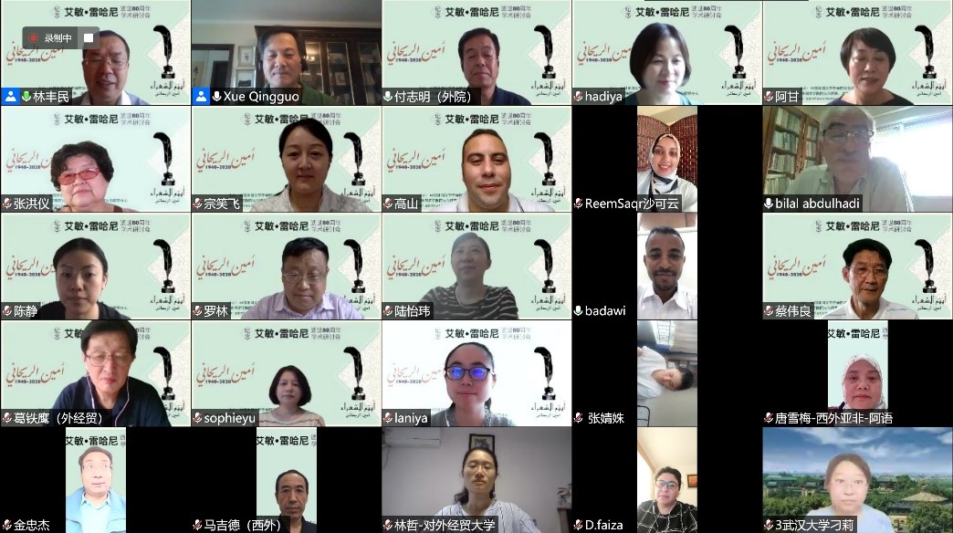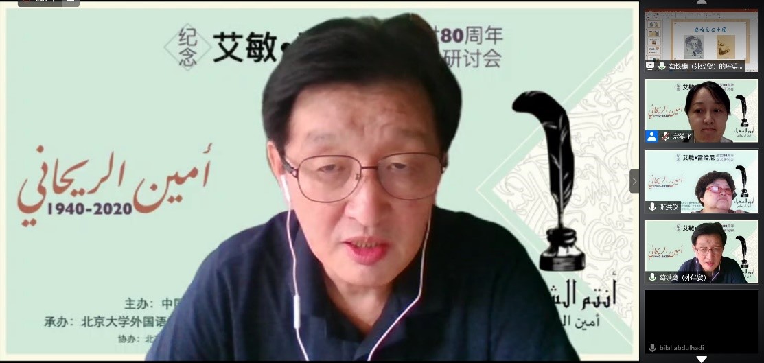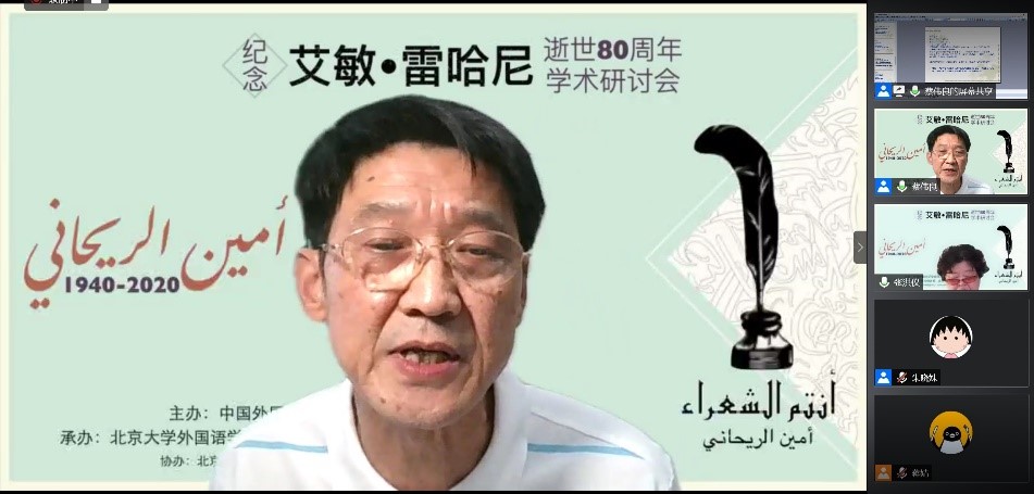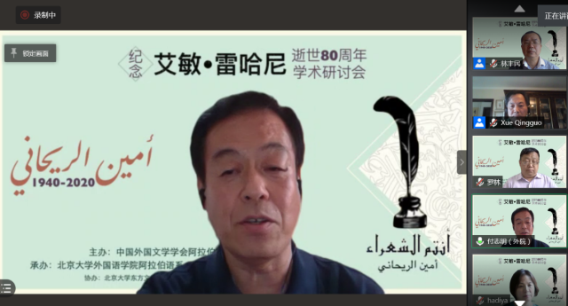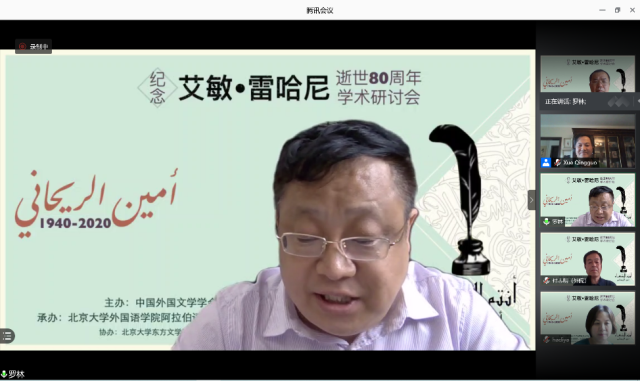 2020年8月29日,由中国阿拉伯文学研究会主办,B体育平台阿拉伯语系和北京语言大学阿拉伯研究中心共同承办,教育部人文社会科学重点研究基地北京大学东方文学研究中心和北京大学中东研究中心协办的“艾敏•雷哈尼逝世八十周年纪念研讨会”拉开帷幕,来自北京大学、南开大学、中山大学、北京外国语大学、北京语言大学、对外经济贸易大学、上海外国语大学、天津师范大学、中国社会科学院外国文学研究所、黎巴嫩大学、苏丹喀土穆大学等国内外高校和科研单位的80名学者和研究生参加了这一场云端的思想盛宴。开幕式主持人薛庆国教授提到,艾敏•雷哈尼作品在国内研究较少的现状,可以通过雷哈尼的作品更好地理解黎巴嫩如今的局势。今年恰逢阿拉伯之春爆发10周年,雷哈尼的作品不仅具有预见性,我们也能从中抽丝剥茧地探寻解决当今阿拉伯世界众多问题的答案。