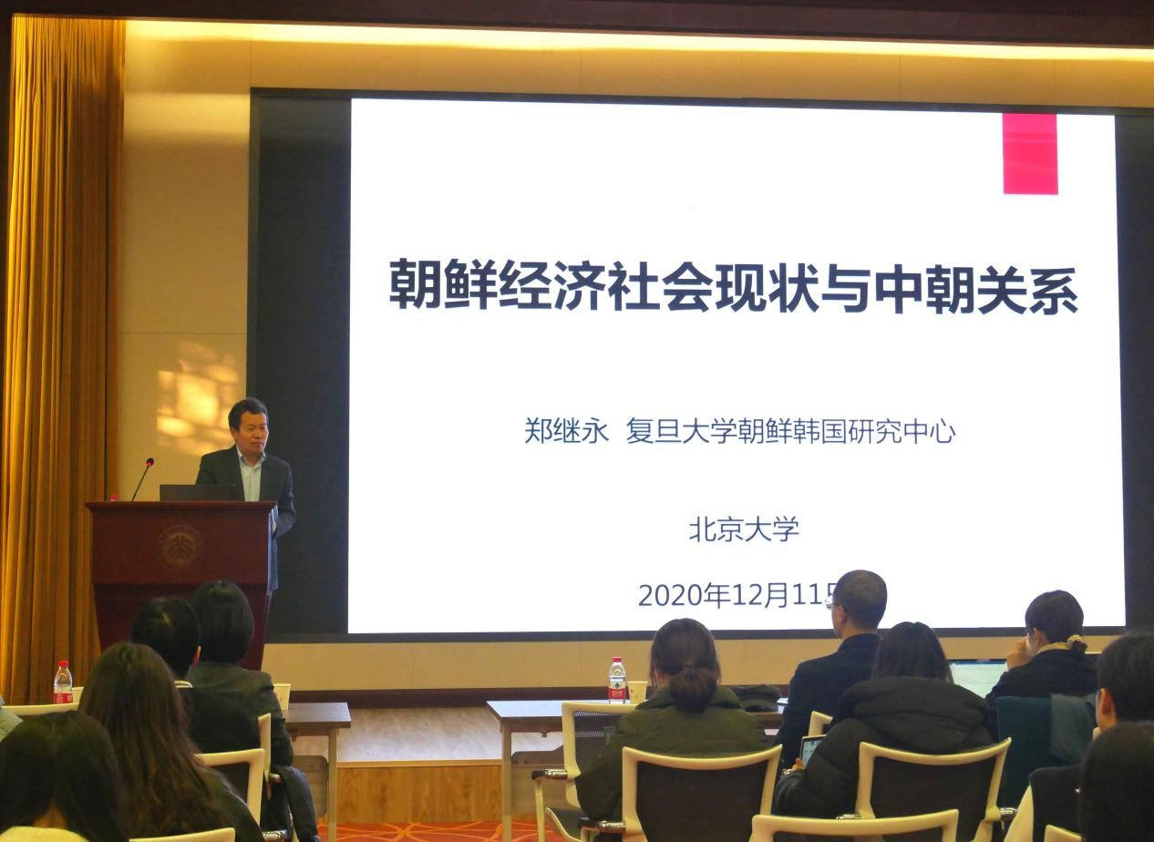 2020年12月11日,B体育平台朝鲜(韩国)语言文化系主办的第五十二次“感知韩国系列文化讲座”在民主楼208会议室举行。本次讲座的主题为“朝鲜社会现状与中朝关系”,主讲人是复旦大学国际问题研究院郑继永教授。朝(韩)语系主任王丹教授等系内师生五十余人和延边大学朝鲜韩国研究中心的两位老师到场聆听了讲座。