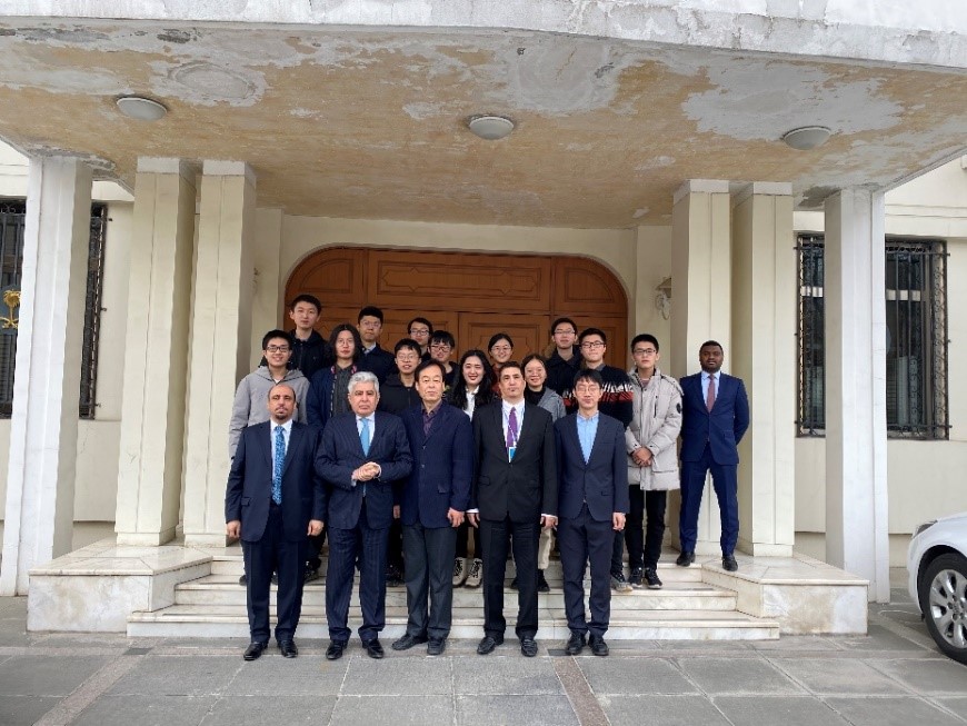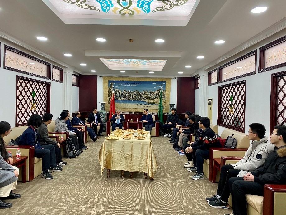 应沙特阿拉伯王国驻华大使图尔基•本•穆罕默德•本•阿卜杜拉•艾勒马迪阁下邀请,B体育平台2019级本科阿拉伯语班同学们在B体育平台副院长付志明老师和阿语系李海鹏老师带领下,参访沙特驻华大使馆。同行的还有2020级研究生区俊良。