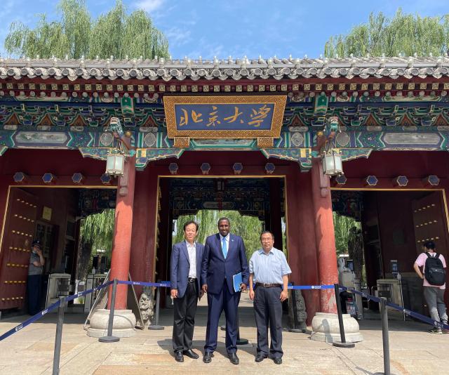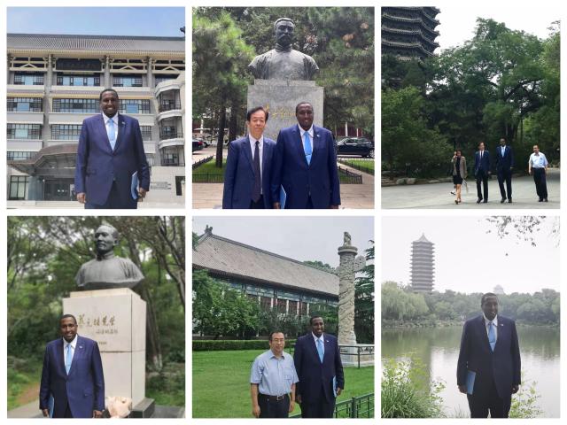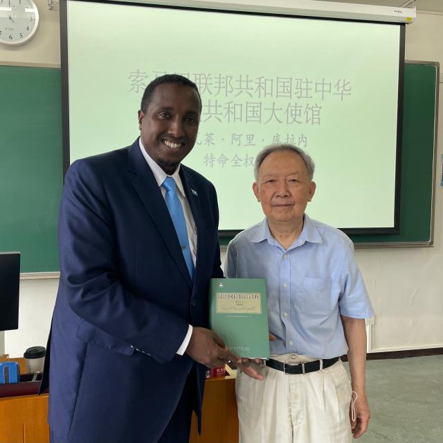 6月15日上午,索马里驻华大使阿瓦莱•阿里•库拉内(Awale Ali Kullane)应邀访问北京大学,与北京大学副校长王博举行会谈,并为B体育平台阿拉伯语系师生做了题为“中国与索马里关系”的演讲。