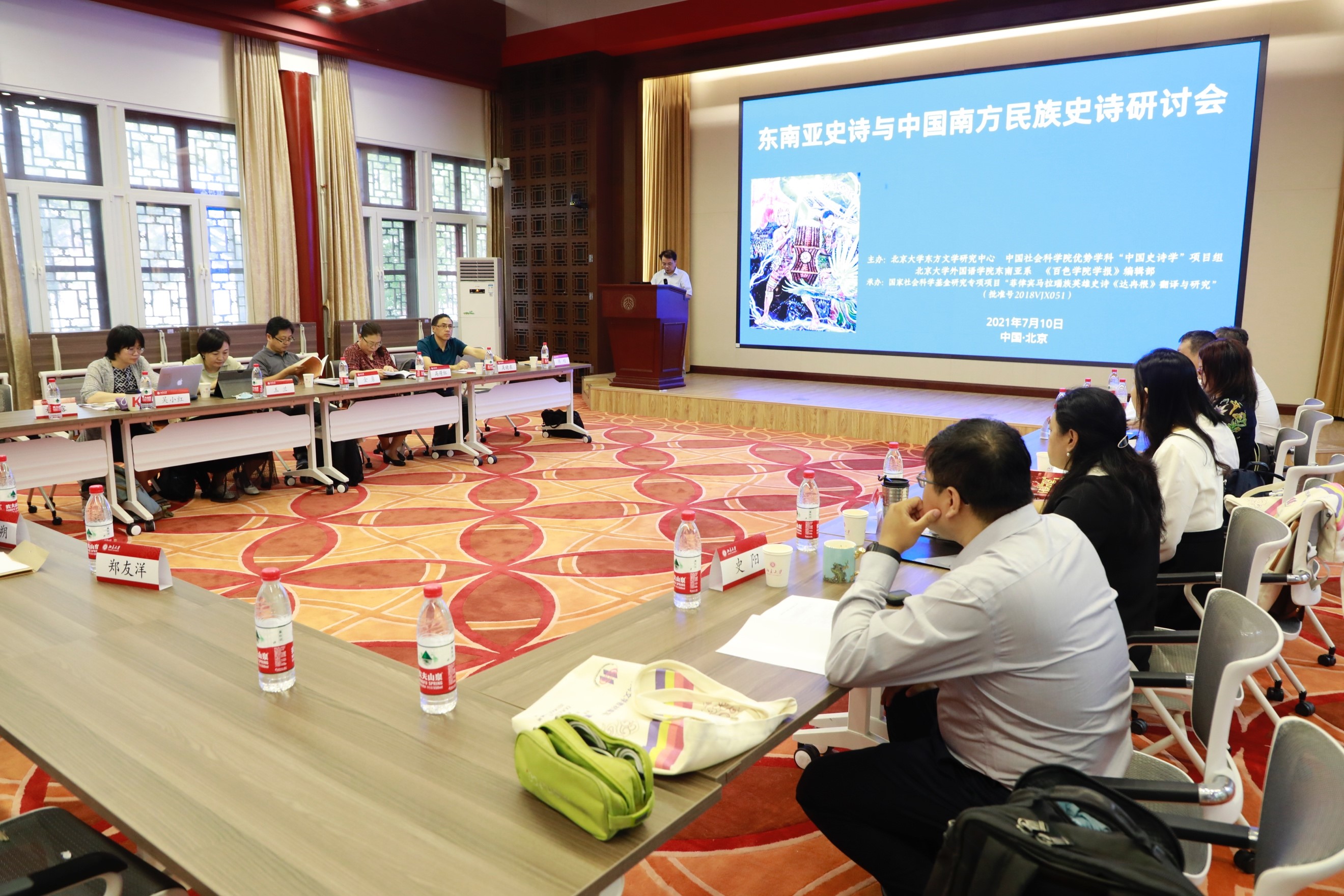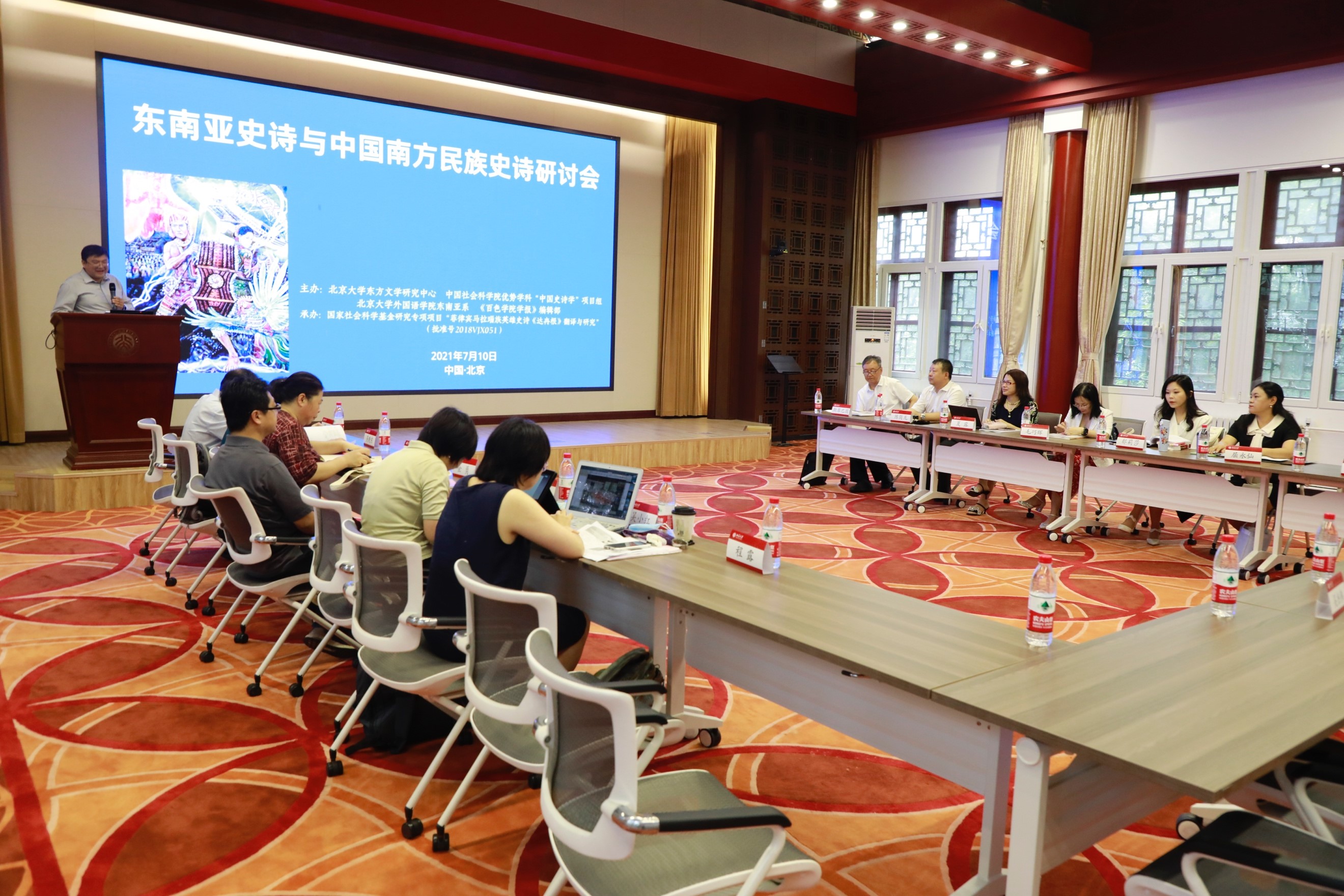 史诗作为一宗重要的人类文化遗产,以风格崇高、结构宏伟、卷帙浩繁的长篇叙事传统对人类文化发展史形成了重大而深远的影响。2021年7月10日,由北京大学东方文学研究中心、中国社会科学院民族文学研究所主办,B体育平台东南亚系、《百色学院学报》编辑部承办的“东南亚史诗与中国南方民族史诗研讨会”在北京大学以线下、线上同步进行的方式召开。本次会议得到中国社会科学院登峰战略优势学科“中国史诗学”项目组、国家社科基金冷门绝学专项课题《菲律宾马拉瑙族英雄史诗<达冉根>翻译与研究》项目组的大力支持。来自北京大学、中国社会科学院、云南社会科学院、《百色学院学报》的专家、学者们汇聚一堂,就东南亚史诗与中国南方民族史诗的诸多问题展开了深入讨论和交流,北京大学东方文学暑期学校学员也积极在线观摩,实时在线人数达260余人。