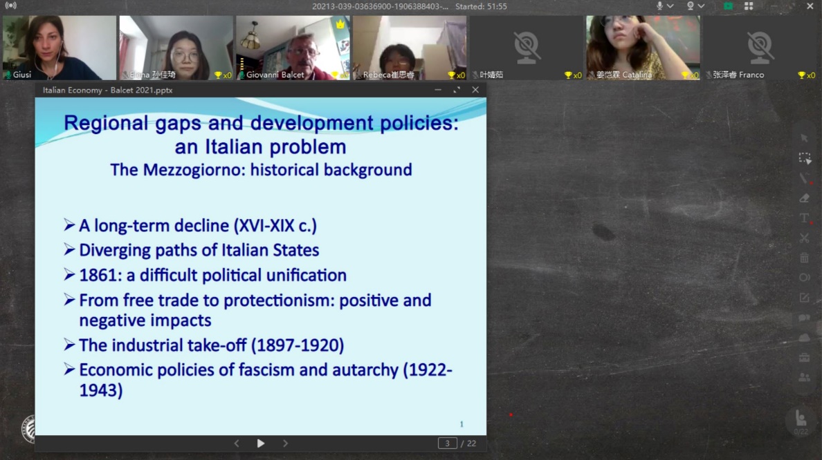 2021年7月5日至7月19日,B体育平台“意大利语言和文化暑期课”顺利举办。因疫情原因,本次暑期课以线上授课的形式进行。课程由语言基础模块及历史社会文化讲座模块两部分构成,其中语言部分主要教授学生意大利语日常交流的相关内容,让学生对意大利语有初步了解,熟悉发音并掌握基础的意语表达;文化讲座部分由来自北京大学和都灵大学不同背景的多位老师担任,内容涉及意大利历史、文学与艺术、当代意大利政治经济及社会等多方面话题。来自B体育平台、元培学院、光华管理学院、物理学院、哲学系、社会学系、医学部等院系的同学参加了本届暑期课,课程同时针对校外开放,来自国内外不同高校及不同学习背景的学员也参与了此次课程。