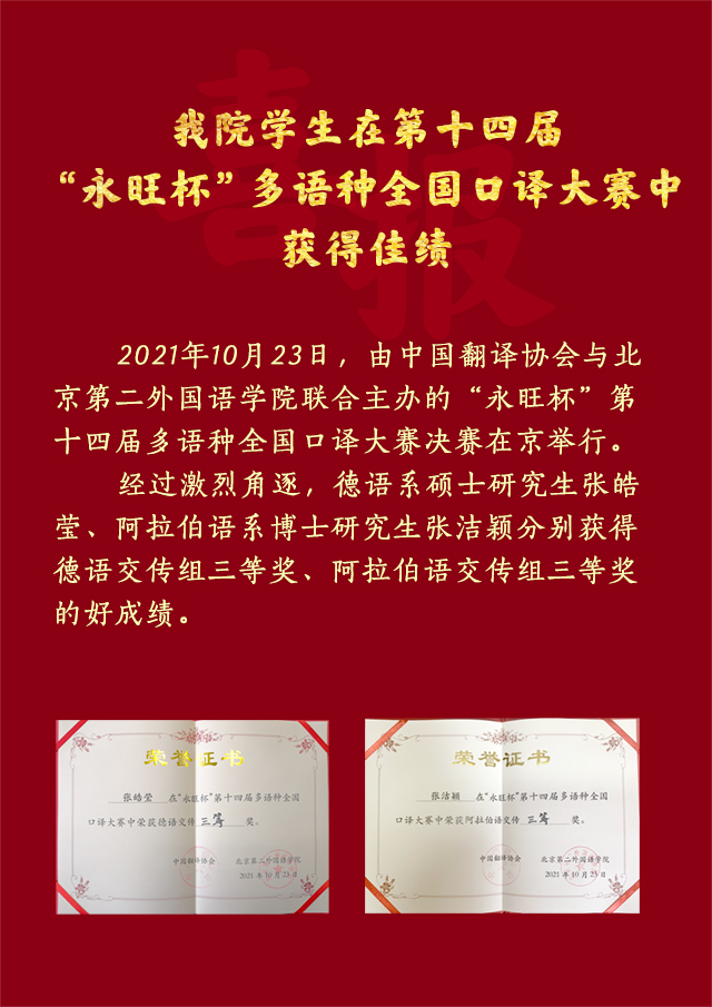 我院学生在第十四届“永旺杯”多语种全国口译大赛中获得佳绩