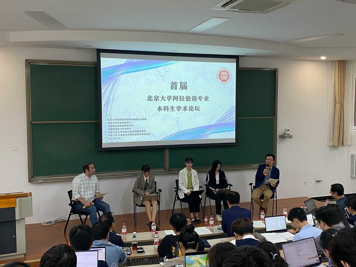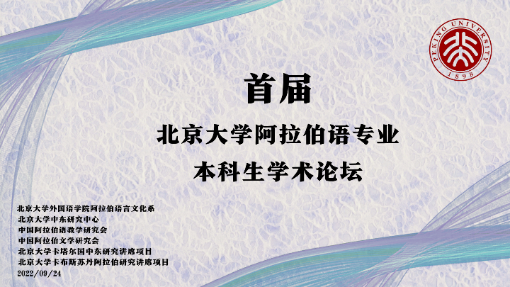 2022年9月24日,首届北京大学阿拉伯语专业本科生学术论坛在北京大学外文楼103举行。本届论坛由B体育平台阿拉伯语言文化系、北京大学中东研究中心、中国阿拉伯语教学研究会、中国阿拉伯文学研究会、北京大学卡塔尔国中东研究讲席项目、北京大学卡布斯苏丹阿拉伯研究讲席项目共同举办。