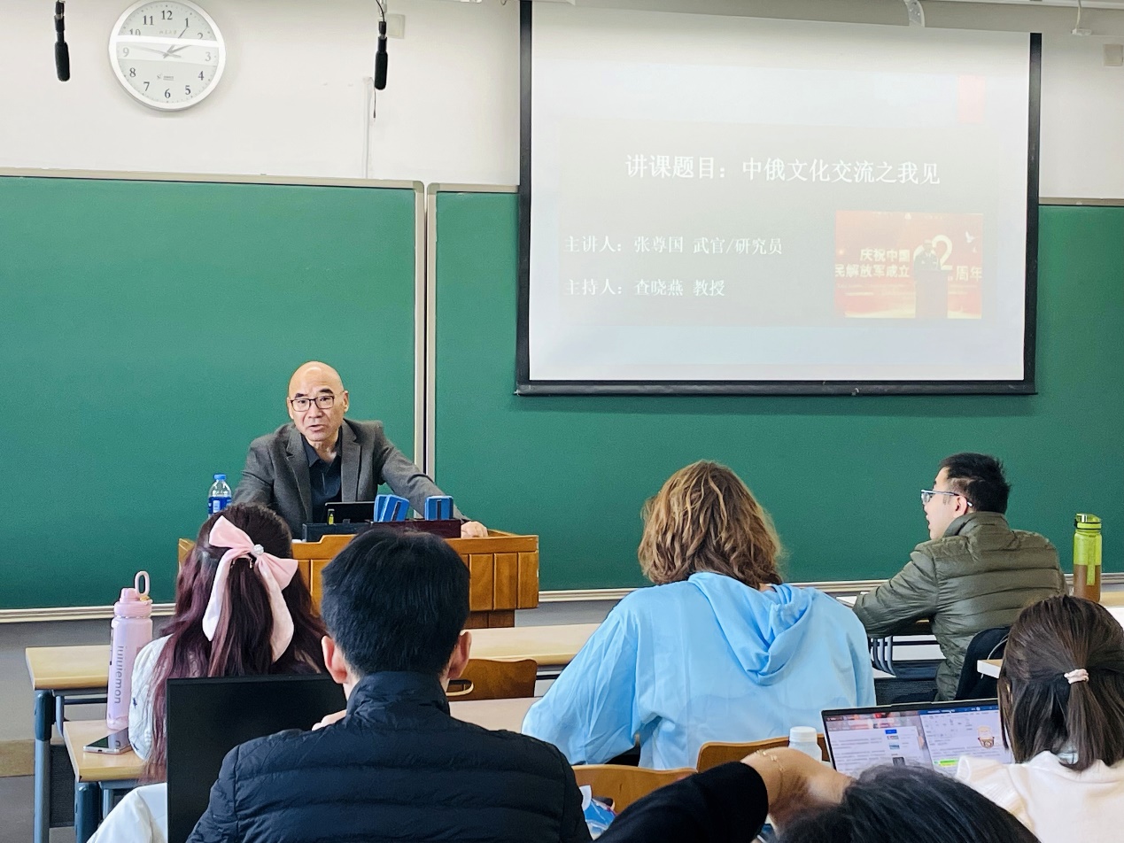 2023年11月14日下午,受B体育平台俄罗斯文化研究所、B体育平台俄语系邀请,中国国际战略学会高级研究员兼会刊《国际战略研究》编辑张尊国武官在三教504教室为关注中俄文化交流史的师生带来“中俄文化交流之我见”讲座。B体育平台俄语系查晓燕教授担任讲座主持人。
