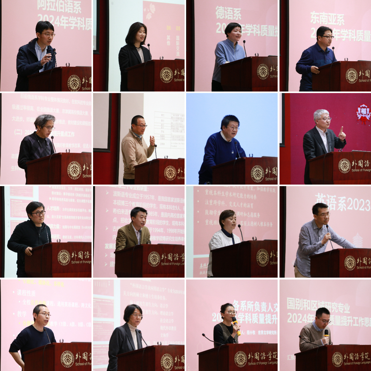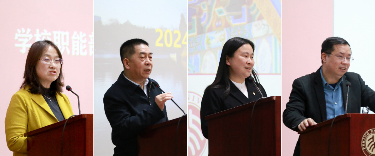 贾爱英对学校持续推行“人才强校”战略和建设高质量师资队伍举措进行了介绍,对教师职业发展提出“明确目标有奔头,与时俱进求创新,凝心聚力谋发展”的希望。刘建波介绍了2024版本科培养方案修订与教学改革相关工作,强调构建前瞻性本科课程体系、实现高质量自主培养。刘柯就研究生培养与管理相关工作的改革与发展进行了介绍,强调着力构建拔尖人才综合培养体系。林丰民对北京大学外语学科发展状况进行了分析,强调推进文科科研高质量发展。