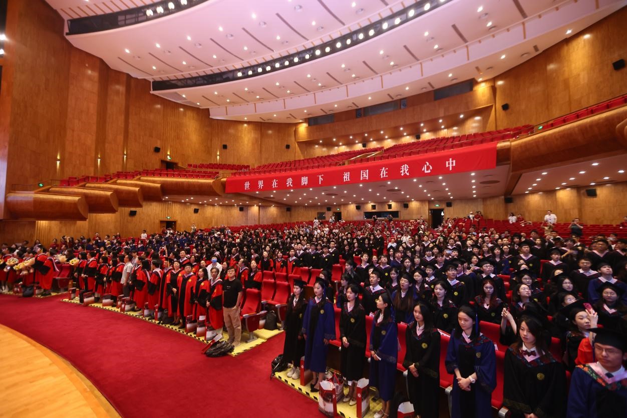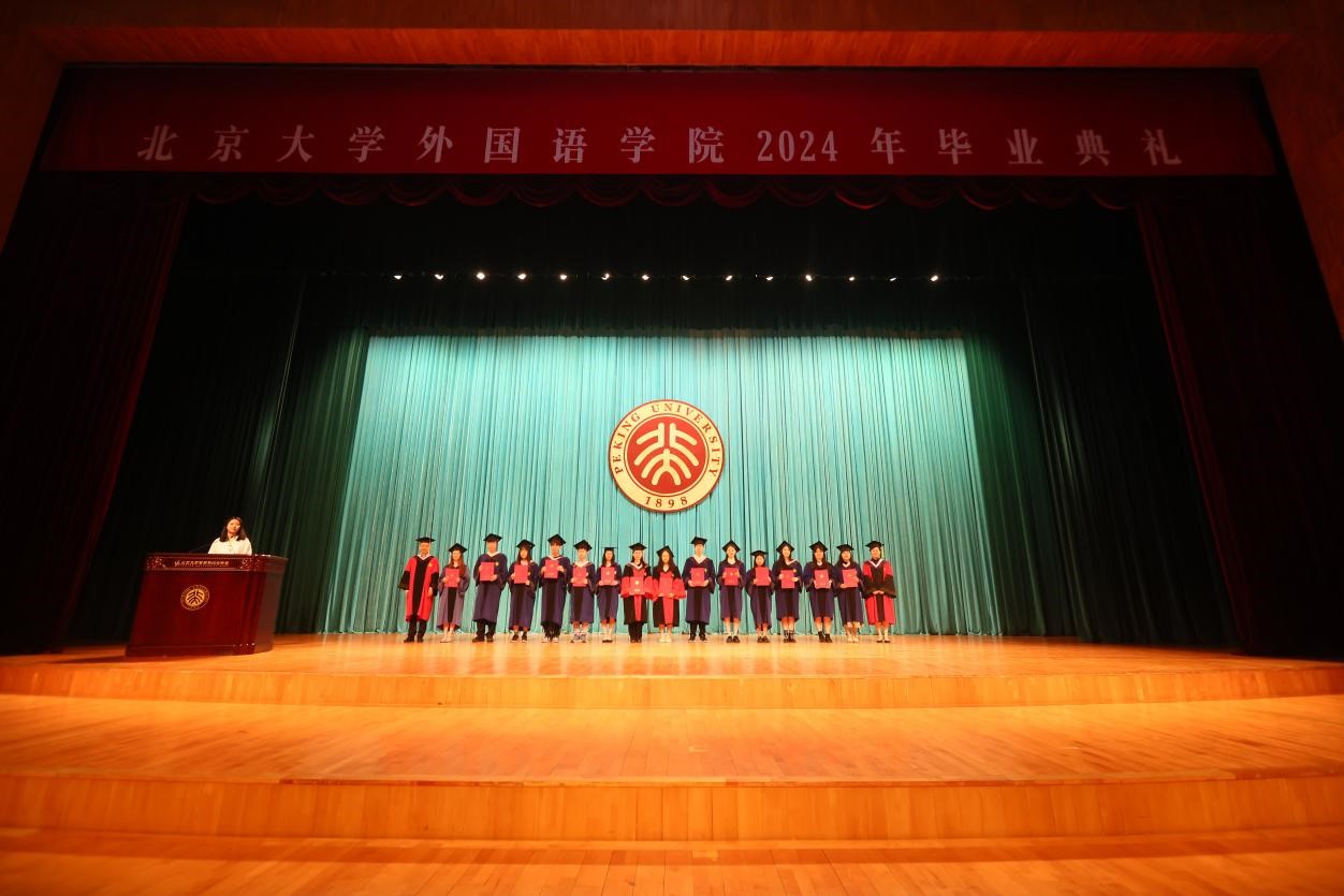 典礼行将结束,师生合唱《燕园情》。“燕园情,千千结”,联结的是所有外院人、北大人的心,不变的是真诚的师生情、同学情。“眼底未名水,胸中黄河月”,同学们将带着北大外院人的初心使命,奔赴天涯海角。