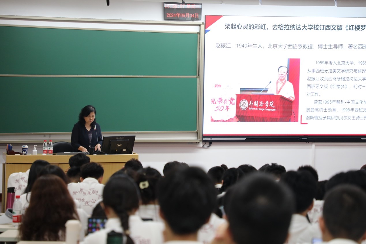 李淑静嘱托新生同学,随着祖国的繁荣富强,不仅中国需要了解世界,世界更需要了解中国。希望在老师们的言传身教下,同学们心怀天下,踔厉奋发,践行青年的使命与担当。