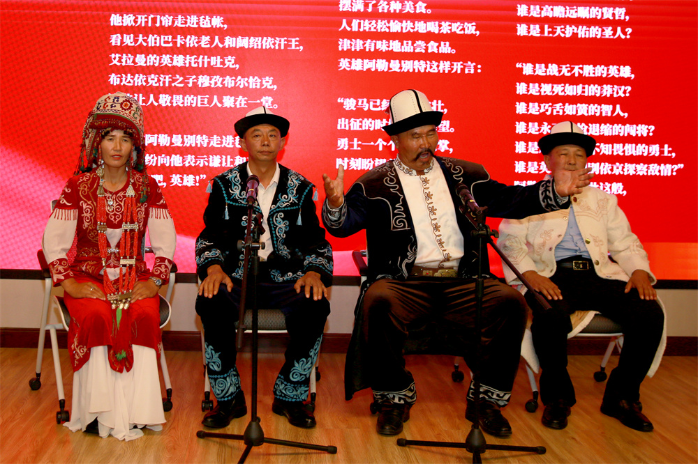 活动伊始,来自克孜勒苏柯尔克孜自治州的4位玛纳斯奇演述了柯尔克孜族史诗《玛纳斯》。随后,中国社会科学院民族文学研究所阿地里·居玛吐尔地研究员向大家讲述了史诗《玛纳斯》搜集、整理、出版及传承情况。阿地里谈到,《玛纳斯》史诗融会了柯尔克孜族全民族的智慧,更是属于柯尔克孜族的集体记忆。随后,青年传承人托合那力·吐逊那力进行了简短的《玛纳斯》史诗演述。