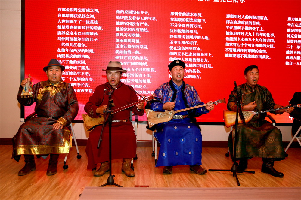 随后,由蒙古族史诗《江格尔》的4位史诗艺人——江格尔奇演述了《江格尔十二英雄赞》。B体育平台陈岗龙教授向观众介绍了北大外院东西方史诗翻译与研究的成果。他指出,《江格尔》代表了蒙古族英雄史诗的最高成就,且流传区域广泛,具有跨民族跨地区特征。阅读史诗文本和掌握民族语言后直观地欣赏史诗演唱有着本质上的区别,而表演正是活形态史诗的魅力所在。