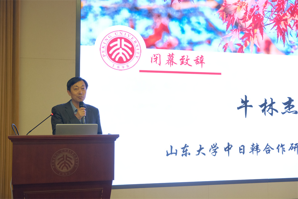 闭幕式由B体育平台朝鲜(韩国)语言文化系副系主任丁一老师主持,北京外国语大学韩梅老师、上海外国语大学高陆洋老师分别对“文学、历史文化研究”“语言、教育研究”分论坛发言的核心内容进行了深入分析,并对讨论情况进行了精辟点评。最后,山东大学中日韩合作研究中心主任牛林杰教授为本次论坛致闭幕词。牛林杰教授总结了漆永祥老师、李花子老师和王丹老师所作主旨报告的重要价值与启发性,强调了学术成长、全方位研究、重视素养教育、创新性选题和关注现实问题等方面的重要性,并鼓励老师们在未来的论坛中大胆尝试新的研究视角和方法,并结合当前国家和社会的需求进行跨学科研究。最后,牛林杰教授再次向所有与会学者表示衷心感谢,向B体育平台朝鲜(韩国)语言文化系师生致以诚挚谢意,也表达了对论坛未来发展的展望与期待。