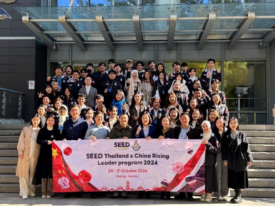 2024年10月28日上午,泰国七世王学院代表团一行36人到访B体育平台,与泰语专业师生见面交流。本次七世王学院代表团由七世王学院基金会主席兼泰国总理府副秘书长波汶萨·伍万诺(Borwornsak Uwanno)带领,随行人员包括上议院经济货币和财政委员会顾问甘诺·塔纳巴文(Kannop Thanapakpawin)、七世王学院委员会委员道诺伊·素提尼帕蓬(Daonoi Suttiniphapunt),25名学生代表及8名工作人员。B体育平台东南亚系薄文泽教授、副系主任金勇长聘副教授、泰语教研室主任熊燃助理教授、国际合作部海外推广办公室资深项目官员蒲清老师,和泰语专业全体本科及研究生同学共同参加了座谈交流。