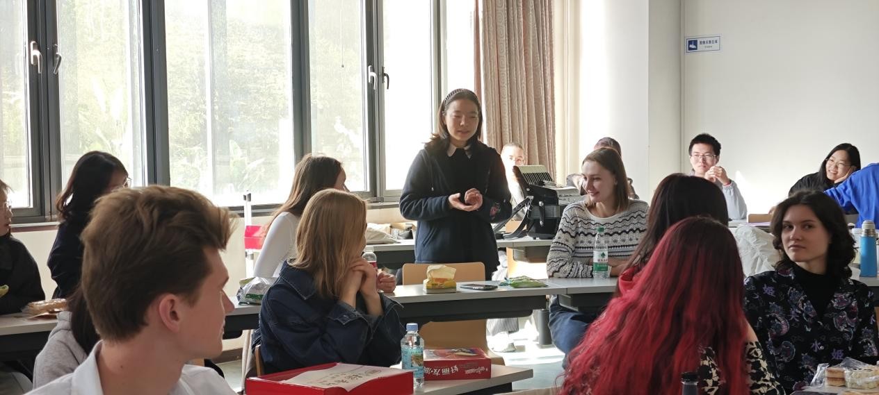在语言交流环节,中、俄同学分享了各自在语言学习中的心得体会,并就学习中的疑难问题展开了热烈讨论。此外,活动还特别安排了美食体验环节,北大俄语系同学特别为莫大孔院同学准备了特色糕点与饮品,大家在品尝美食中增进了对彼此美食文化的理解。