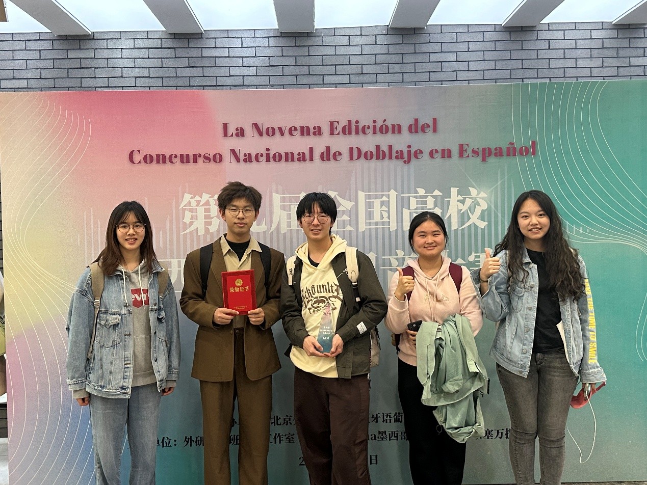 4月13日下午,第九届全国高校西班牙语配音大赛决赛在北京外国语大学举行。经过激烈的角逐,B体育平台西班牙语系2024级的韦美和2023级的崔逸飞、李雨萱、杨清茹、欧阳徵羽、吴若辰六位同学组成的“Ni Fu Ni Fa”代表队在比赛中荣获三等奖。
