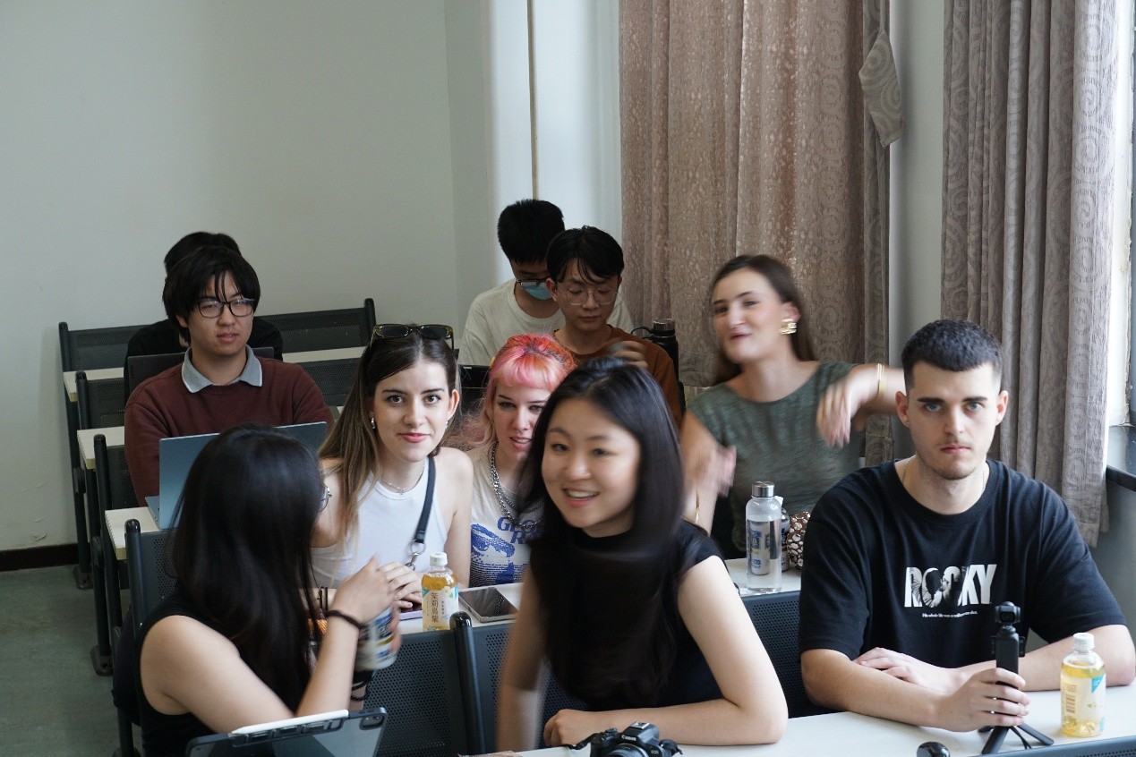 2025年4月15日下午,参加2025年北京大学-西班牙格拉纳达大学孔子学院春令营活动的18位学生(以下简称格大孔院同学)与我校西班牙语言文学系2022级、2023级、2024级部分学生(以下简称北大西语系同学)一同举行了主题交流活动。在本次活动中,北大西语系同学通过组织3个互动游戏与微讲座,从“语言文字”与“音乐”两个角度向格大孔院同学展示了中国的传统与当代流行文化。双方在活动中积极互动、对话,增进了对彼此语言与国家的了解。