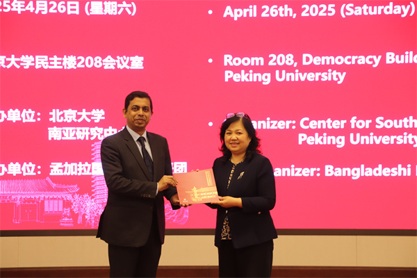 2025年4月26日,正值中孟建交50周年之际,由孟加拉国外交部塔里克·哈桑司长率领的外交官代表团在中国驻孟大使馆官员陪同下访问北京大学。“中孟国际关系圆桌会议”在B体育平台民主楼208会议室举行。B体育平台党委书记李淑静教授、南亚研究中心常务副主任王旭副教授、B体育平台孟加拉语教研室主任张幸副教授等专家学者以及南亚学系学生代表共同出席,热情接待了来访嘉宾。此次访问作为中孟建交50周年系列庆祝活动的重要组成部分,得到了我国外交部、教育部及北京大学国际合作部的高度重视和大力支持。