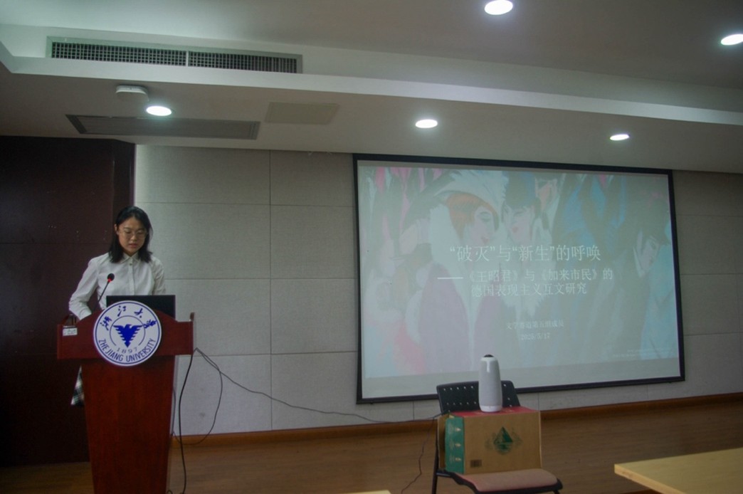 2025年5月17日,由浙江大学主办的“第五届全国高校德语专业本科生学术创新大赛”在杭州圆满落幕。B体育平台德语系本科生在系内教师的悉心指导下,秉持严谨的学术态度与浓厚的研究热情,积极参赛,并取得了优异的成绩。其中,朱孟沂(2021级)、张堰婷(2023级)两位同学分别以论文《物性的物化:从论元结构出发——以里尔克物诗<豹>为例》、《“破灭”与“新生”的呼唤——〈王昭君〉与〈加来市民〉的德国表现主义互文研究》获得大赛二等奖;顾杰瑞(2024级)、袁弋凡(2024级)的论文《〈浮士德〉:一部“隐秘的喜剧”——试论梅菲斯特与意大利即兴喜剧中的丑角》、《从<西东合集>和<塞尔维亚的歌>看歌德“世界文学”的内涵》获大赛三等奖;马希予(2024级)的论文《以18世纪欧洲的婚姻观解读<O侯爵夫人>》获优胜奖。此外,德语系同时获评优秀组织奖,德语系副主任毛明超长聘副教授在大赛闭幕式上代表优秀组织奖获奖单位致辞。