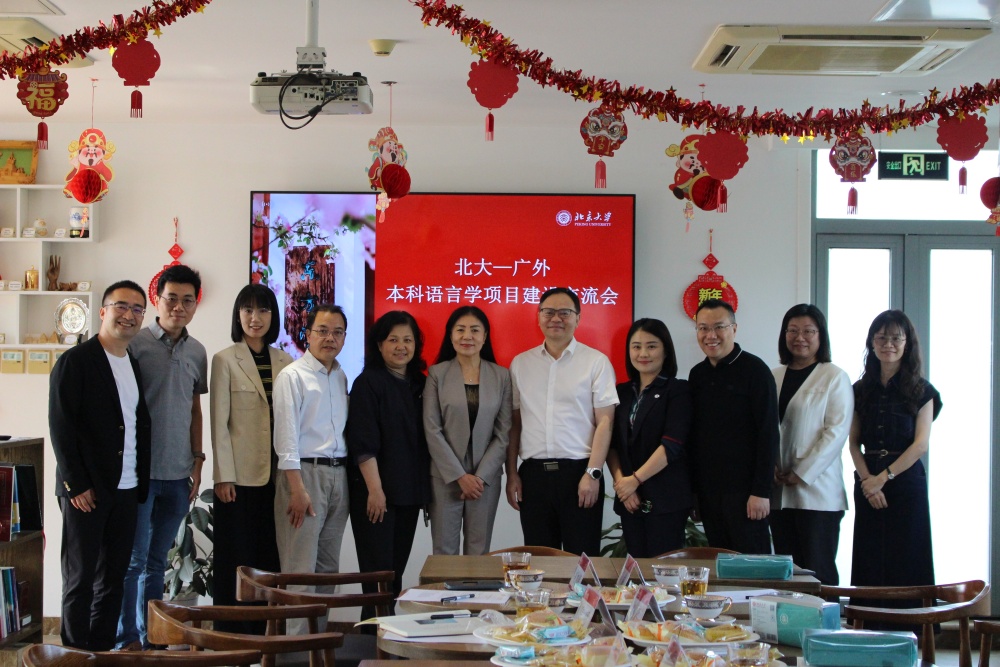 2025年5月23日下午,广东外语外贸大学副校长刘建达率领英语语言文化学院院长张欣、党委书记纪彬、副院长吴庄、党委副书记王迪、院长助理陈哲一行6人出席北大-广外语言学本科项目建设交流会。北京大学党委副书记、副校长宁琦、B体育平台党委书记李淑静、院长陈明、外国语言学及应用语言所所长胡旭辉、副所长冯硕出席了本次交流会。
