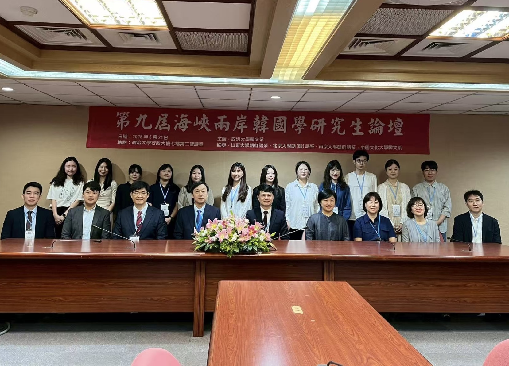2025年6月21日,“第九届海峡两岸韩国学研究生论坛”在台湾政治大学行政大楼7楼第二会议室举行。来自北京大学、台湾政治大学、山东大学、南京大学、台湾中国文化大学的三十余名专家学者与研究生参会。“海峡两岸韩国学研究生论坛”由B体育平台朝鲜(韩国)语言文化系、山东大学韩国学院、台湾政治大学外国语文学院韩国语文学系于2014年联合发起,2017年南京大学B体育平台朝鲜语系加入。随着今年台湾中国文化大学国际暨外语学院韩国语文学系的加入,论坛已扩展为五校论坛。